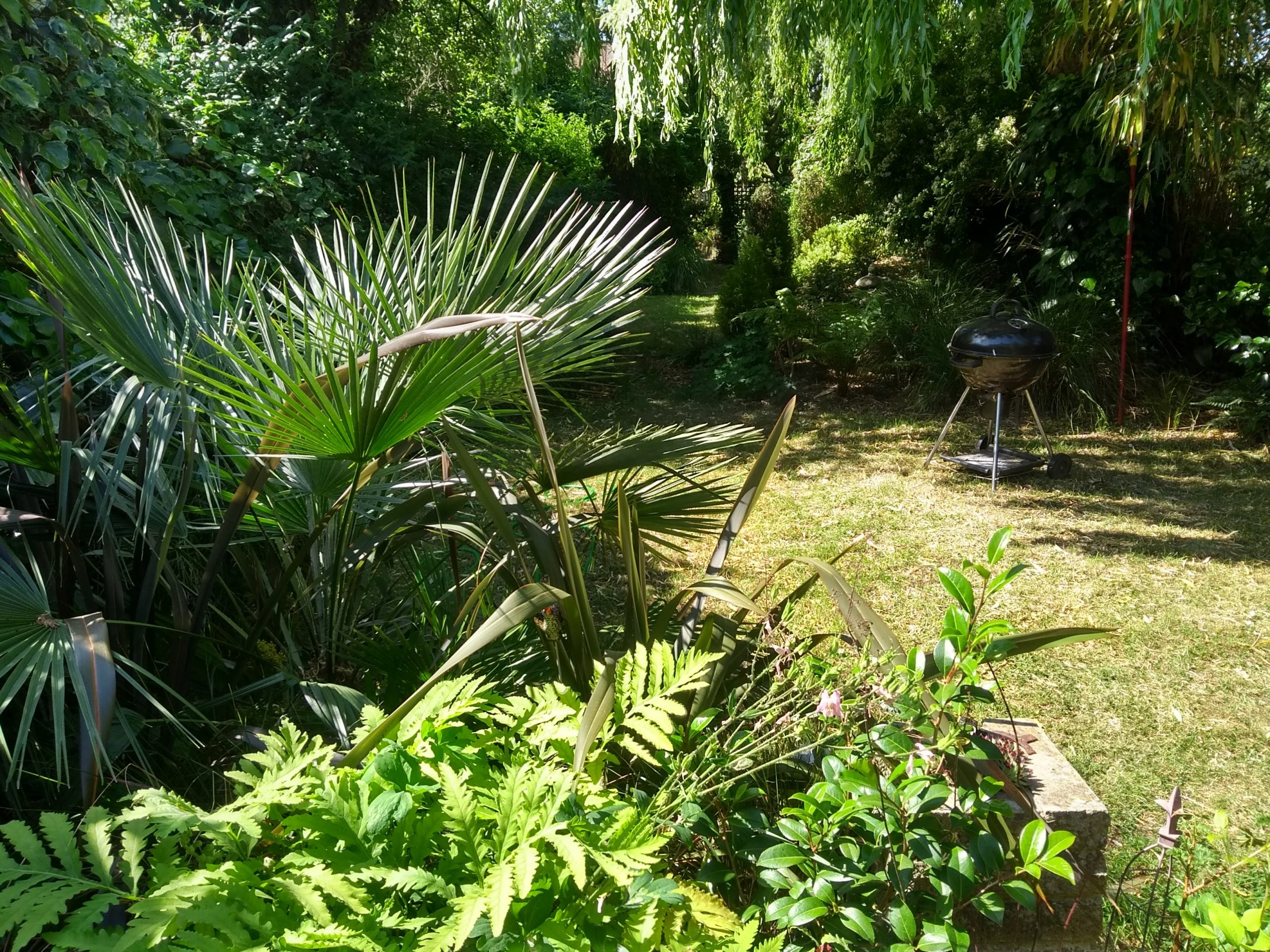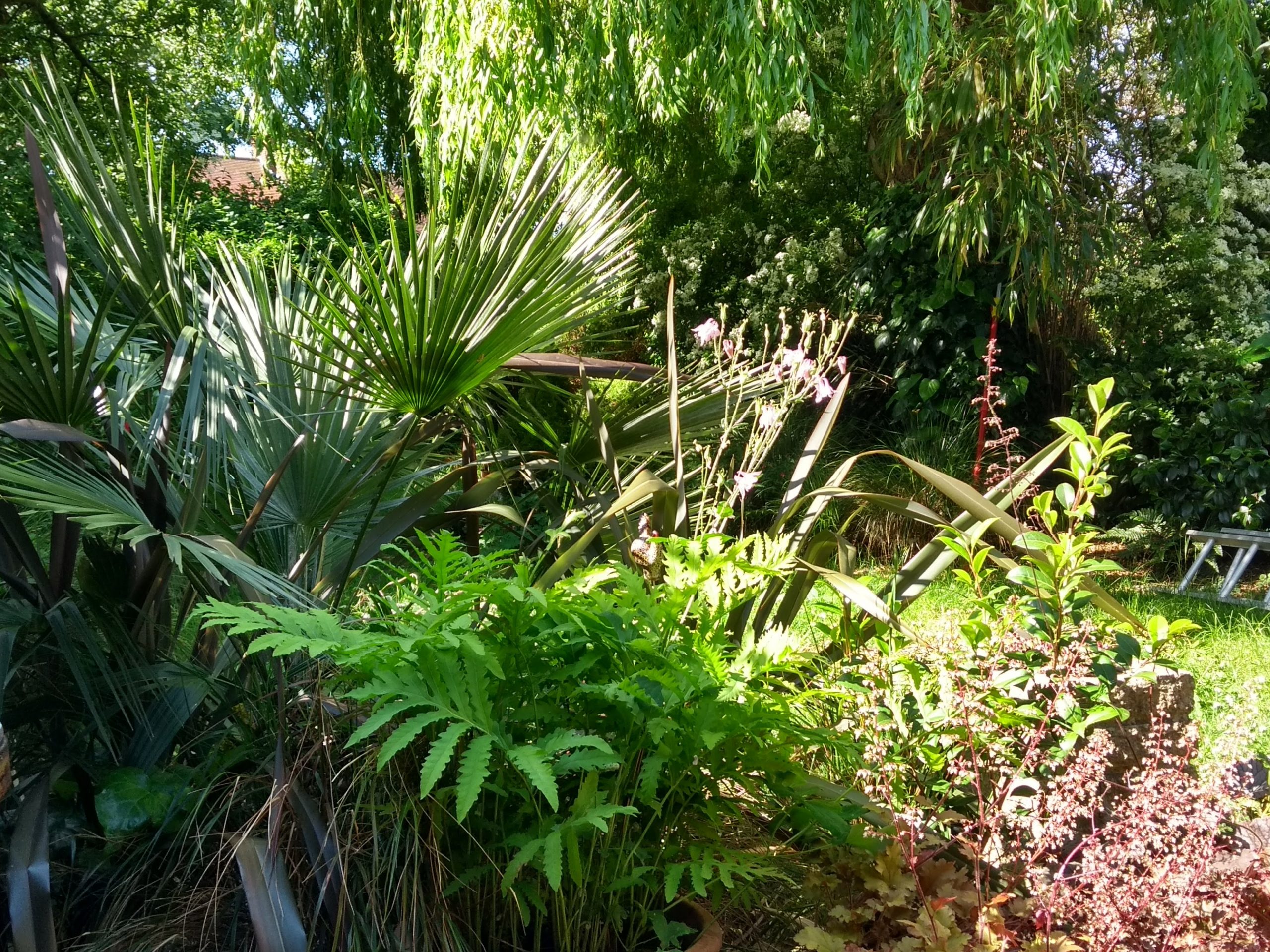 Over the years, garden owner, Matthew Bradby has developed this 40 metre, urban plot into a tranquil and welcoming garden, where a delightfully contrasting mixture of traditional and exotic plants grow beneath the canopy of a weeping willow.