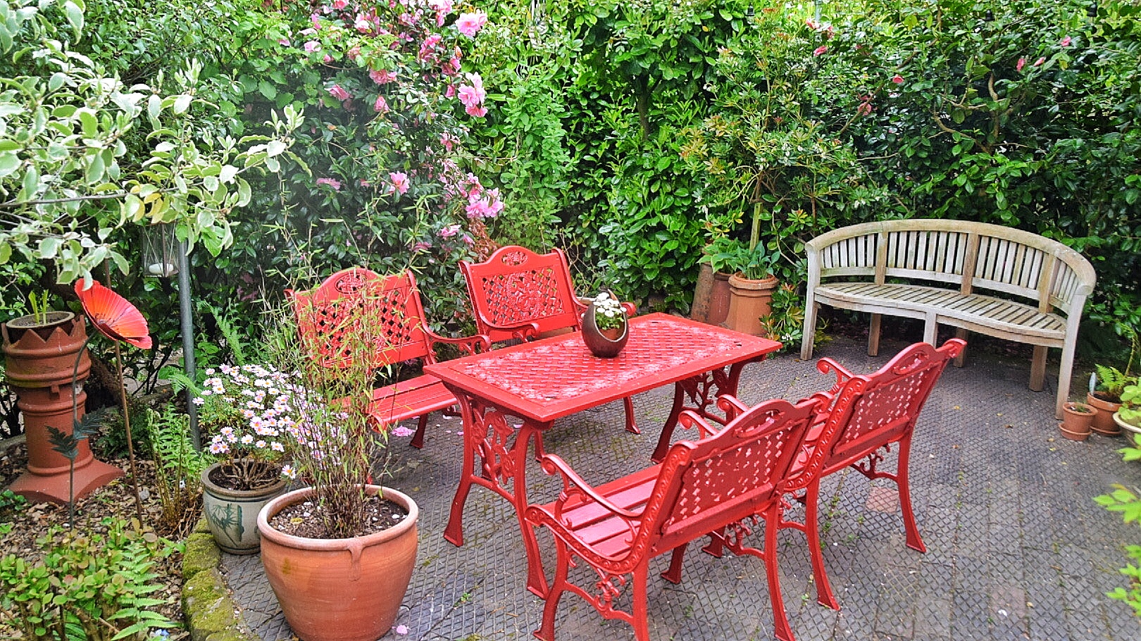 - A classically inspired resting place in dappled shade