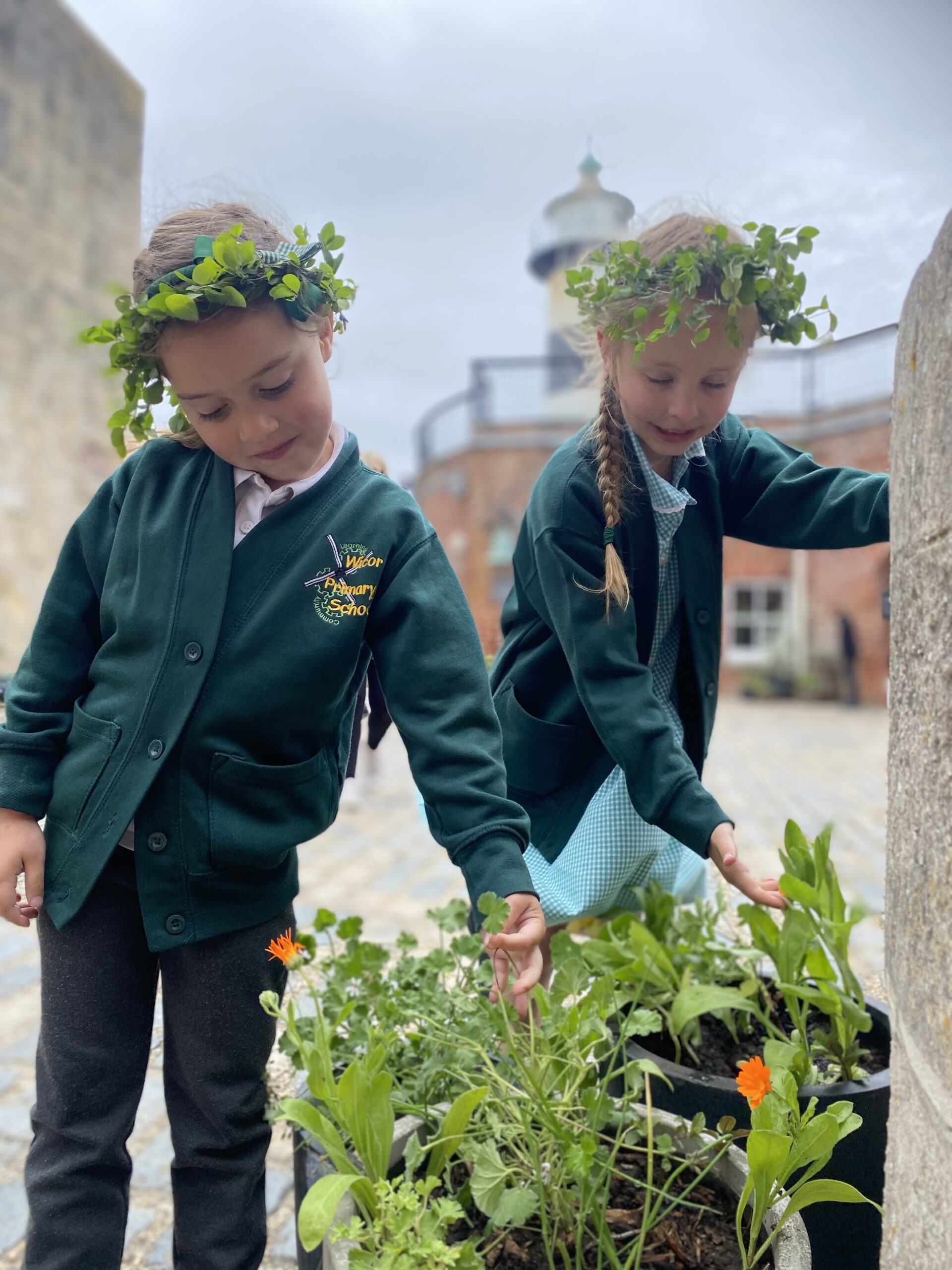 All the plants for the project were grown from seed and cuttings at Wicor Primary School as part of the curriculum, all were sensory plants, and most are edible, giving benefits to visitors to the castle and its cafe. Plants include calendula, chocolate mint, scented pelargoniums, chives, and nasturtiums.
