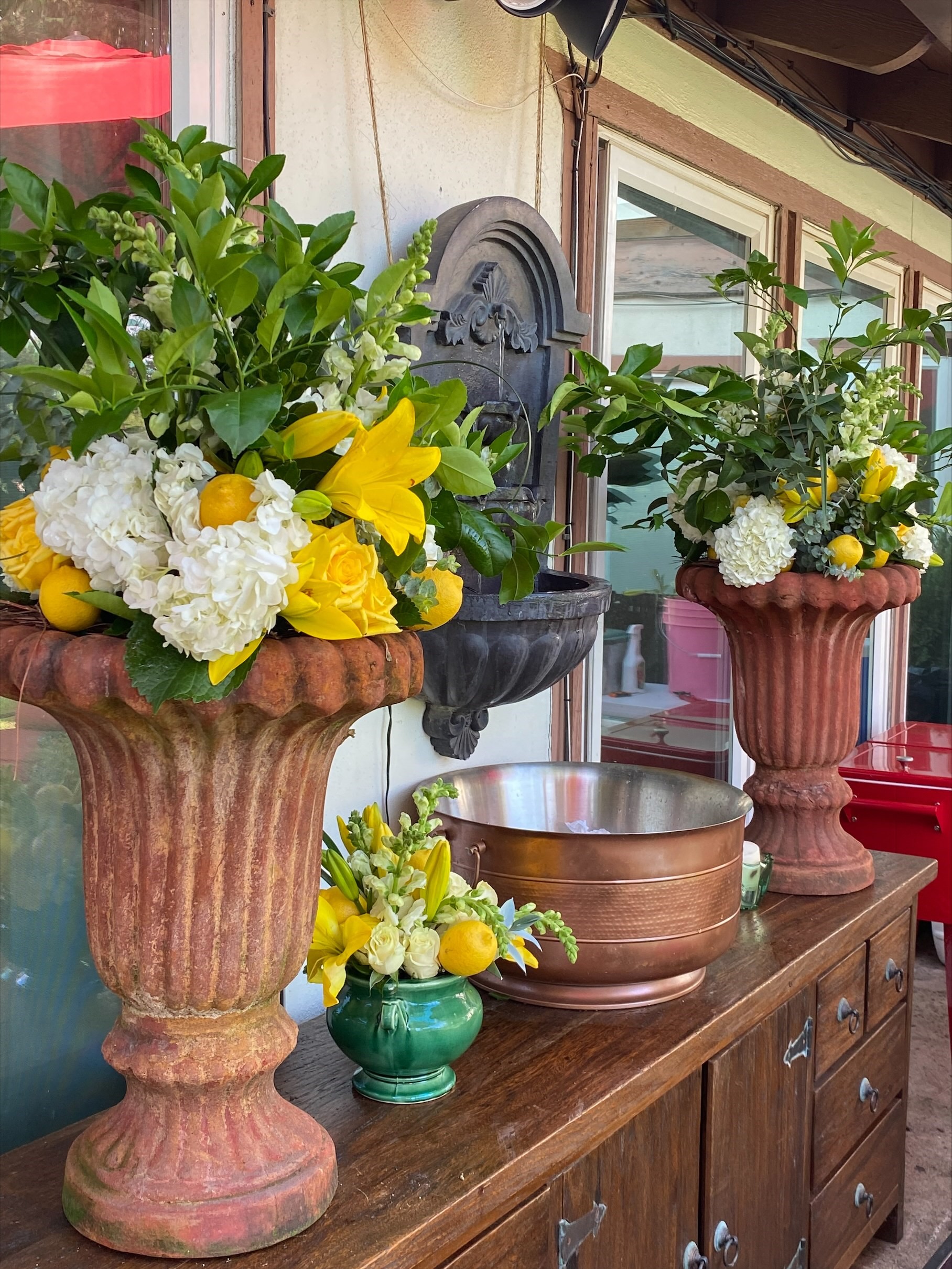 - Incorporate elements of your garden in your party scheme so that you highlight your hard work. You want your garden to be the highlight at a “garden” party. I had arrangements made of my Meyer lemon trees.