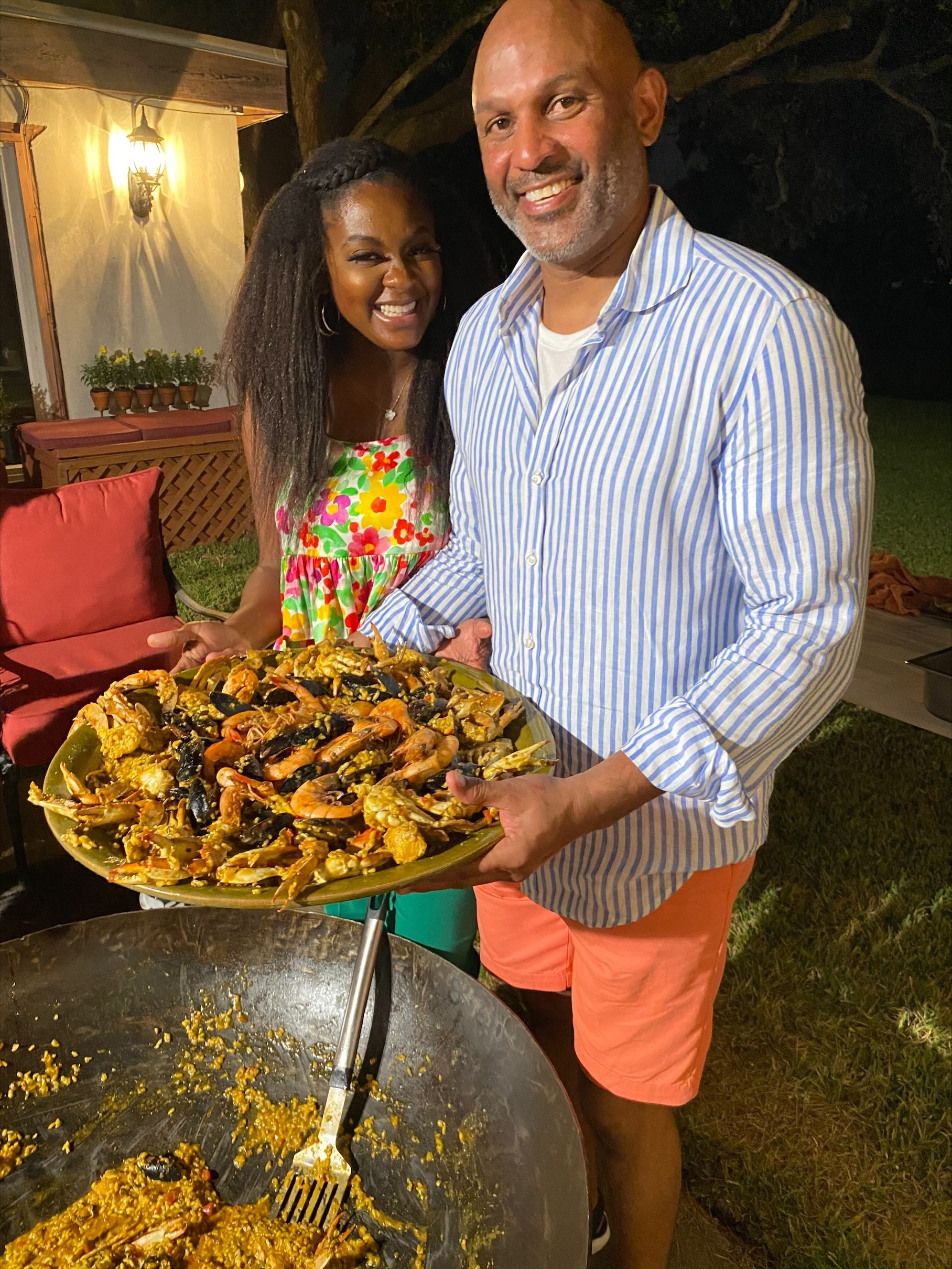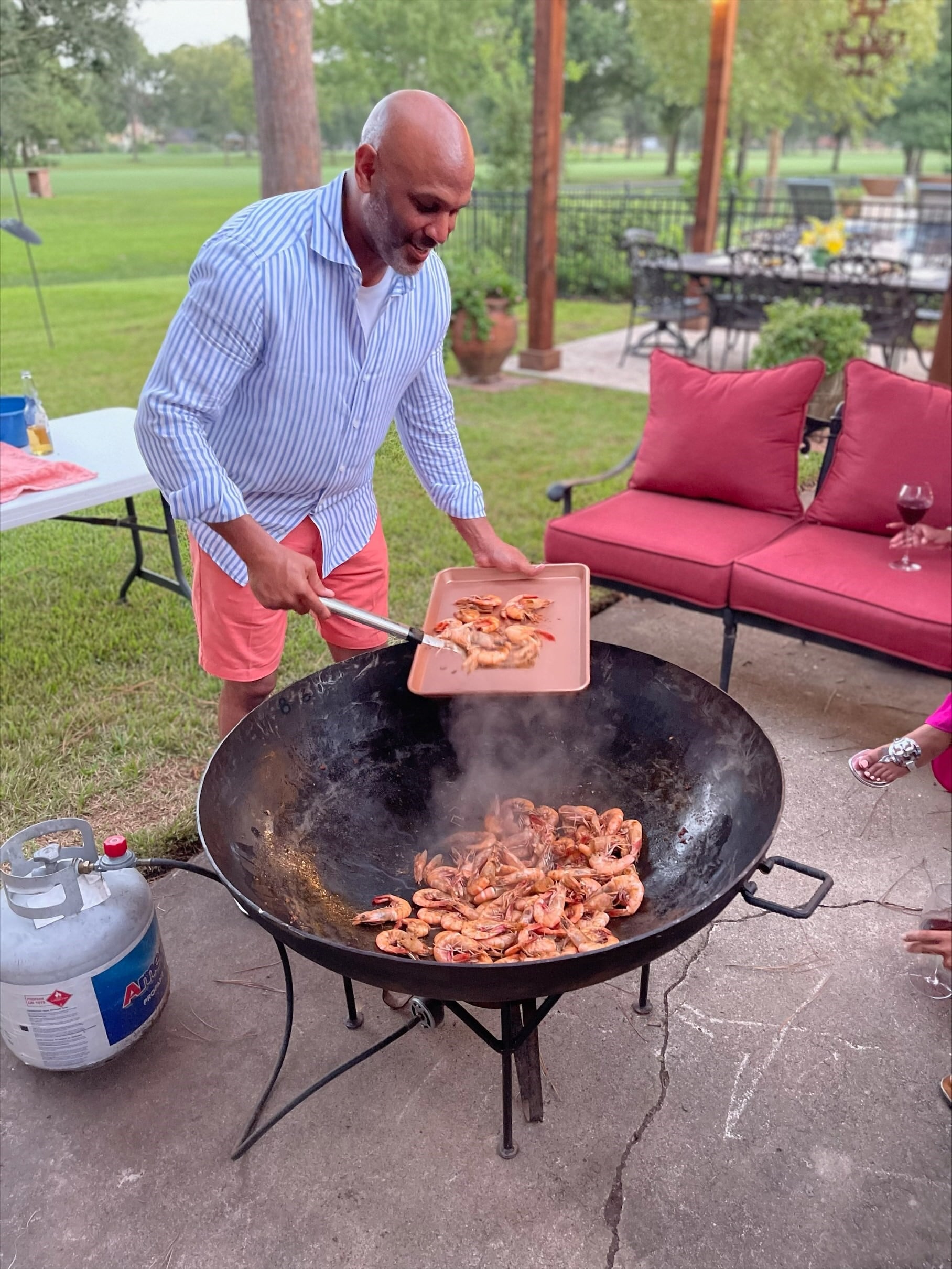 My husband is an attorney by profession, but a chef by passion. When I told him that I wanted to be part of the Great British Garden Party he immediately jumped in to support. He has recently bought a vintage khadai bowl and he was super excited to use it. We came up with the Paella Party theme because of my husband’s passion for cooking and the purchase of his new bowl. The Great British Garden Party fundraiser was the perfect way to break it in. I charged an admission of $10 per person so we all contributed.