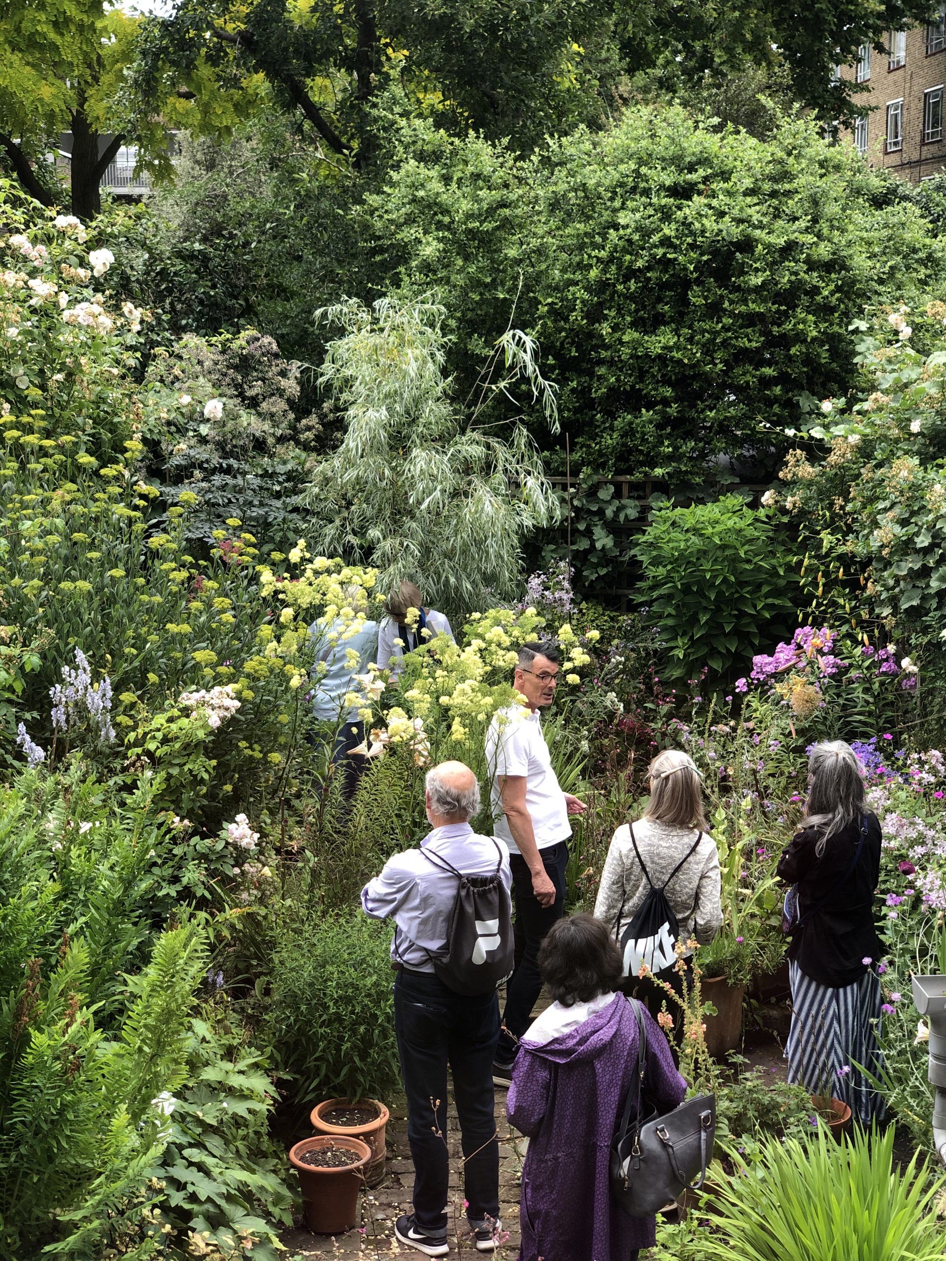 Thrilled by this simple, brilliant idea, I too, stepped forward to volunteer that summer at Thomas’s garden in Islington. I had no idea what to expect, my friends having forgotten to give me a brief amid their preparations to make the garden ready for imminent visitors. When the first person knocked on the door, Peter was charged with taking the money and handing out the tickets while I was to escort them through the house into the garden. Easy peasy, I thought, but soon the number of visitors grew, and I had to learn on the spot how best to manage the numbers in the garden while keeping up a lively conversation with those waiting in the queue. Peter suggested a few topics, the most effective of which was, ‘Do you like to garden?’