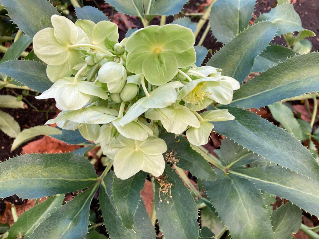 - The Corsican hellebore is also called the holly-leafed hellebore on account of its handsome serrated evergreen leaves which form generous clumps. The clusters of its cool apple green flowers continue from now to spring.