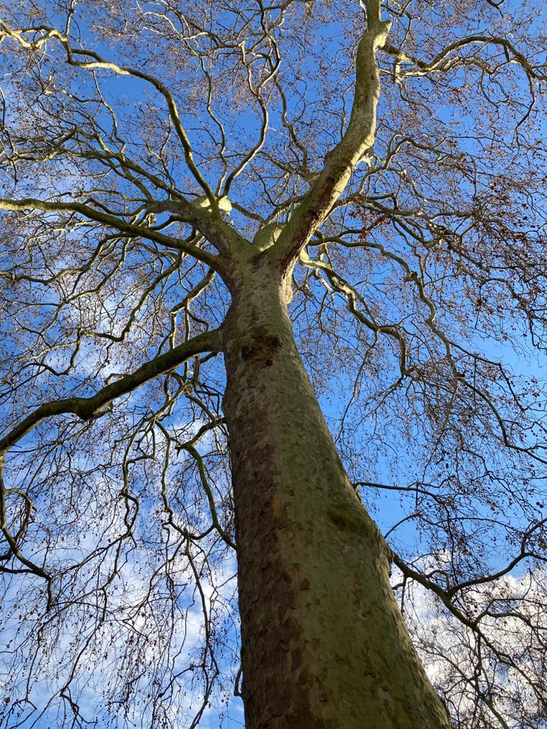 - It’s impossible not wonder at the enormous canopies of our plane trees which give the square garden so much of its character. Their stature is most impressive now when their bare branches are set against the clear winter sky, rather than when clothed in layers of summer foliage.