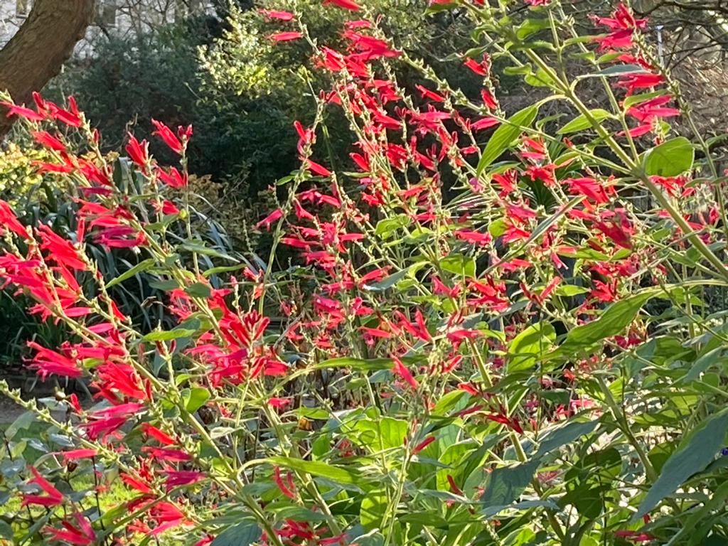 - Back to work with an uplifting burst of colour. These are the salvias I photographed in early November and they’re still flowering. I particularly like the way the low winter sun illuminates them so subtly, a real shot in the arm when most needed, as gardens always provide.
