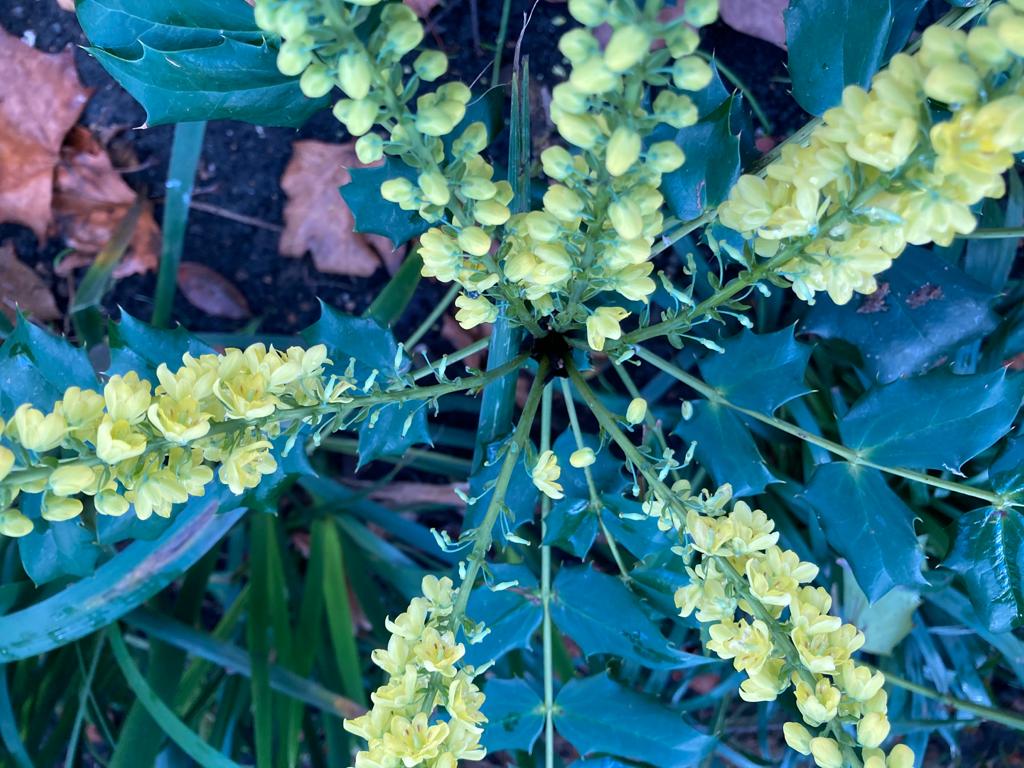 - I wrote about early-flowering mahonias in November, now their cheery yellow flowers are an even more welcome sight in the garden. Some are neat and symmetrical like this one, others less tidy, but nearly all are blessed with delicious scent, just cut a few stems to take indoors.