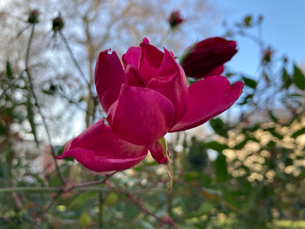 - The very idea of a rose blooming in January is uplifting, let alone the glorious cherry-red colour of ‘Bengal Crimson’ which flowers on and off for much of the year in the square garden. It is one of the romantic group of China roses which all have a lovely relaxed habit.
