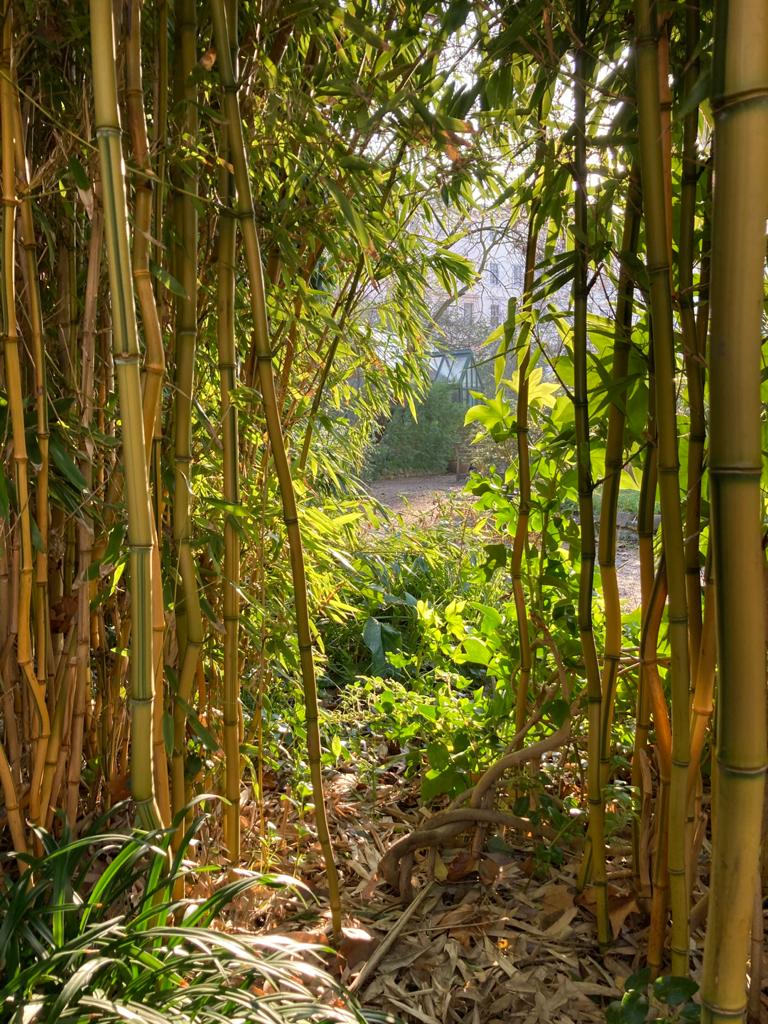 - Panda alert! We have some handsome clumps of bamboo in the square garden, at this time year their richly coloured canes and pale evergreen foliage are particularly striking. I like the expectation of the view through them, and the range of cane colour.