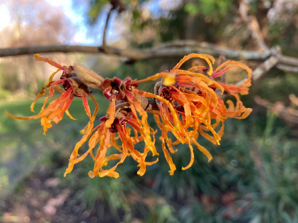 - One of the most characterful families of shrubs that perform in winter are the witch hazels. Their uniquely recognisable spidery flowers in shades of red, orange and yellow appear on bare branches. I think they’re nicely kooky, but they’re also reliable and pretty easy to grow.