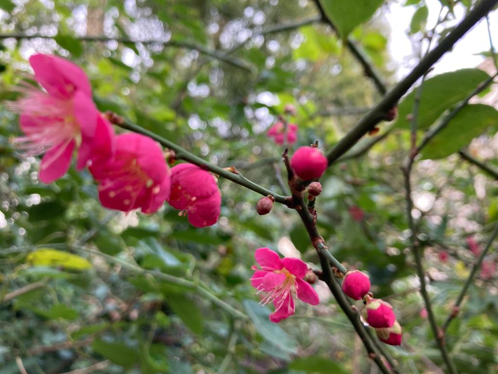 - In the depths of mid-January any scattering of colour is welcome, so the little Japanese Quince tree is particularly welcome. It produces its wonderful pink flowers without fail every year and you can understand why it has been used on Japanese porcelain designs for centuries.