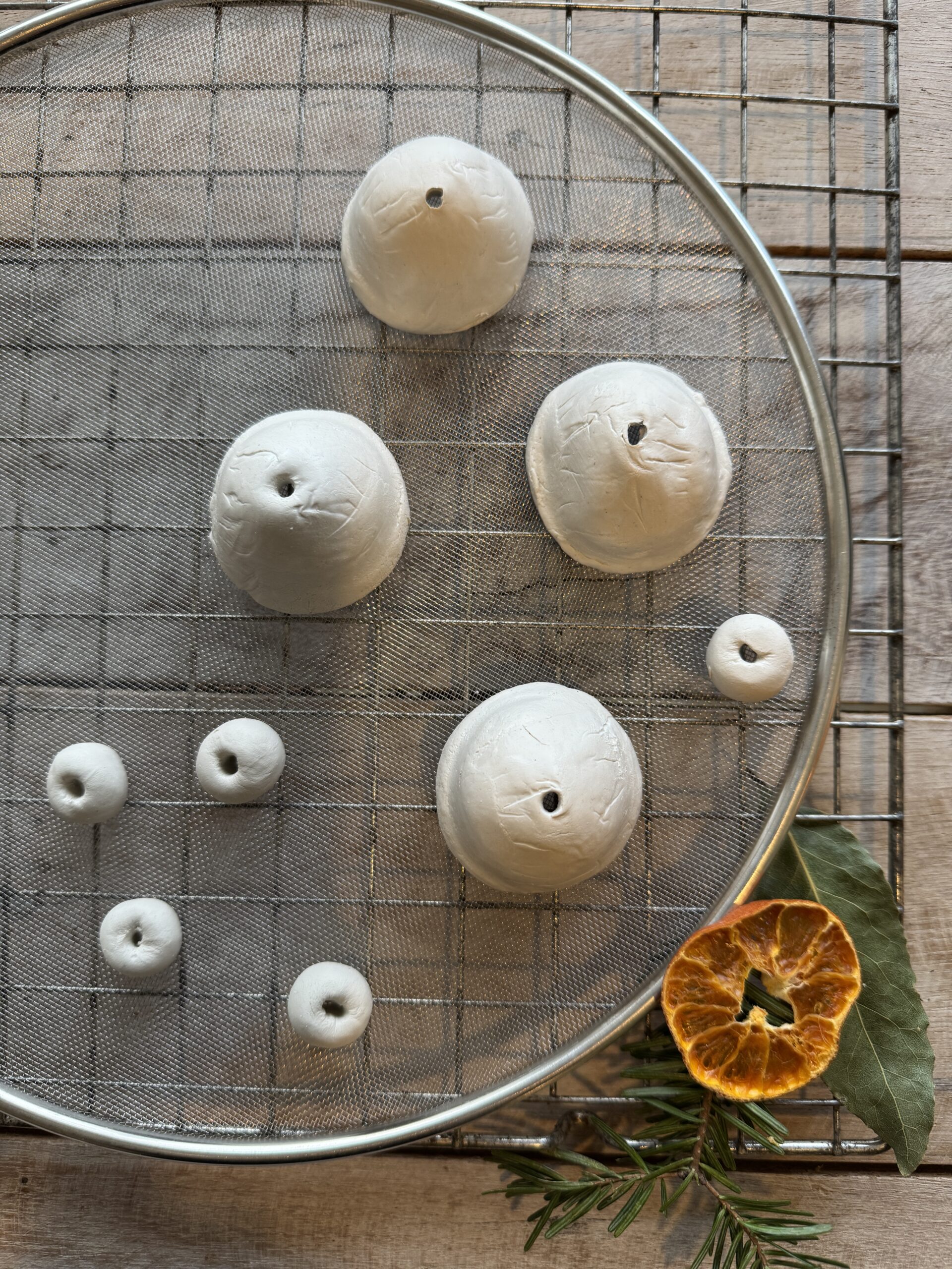3. Roll a small ball of clay to make the clanger and make a hole through it. Set aside to dry