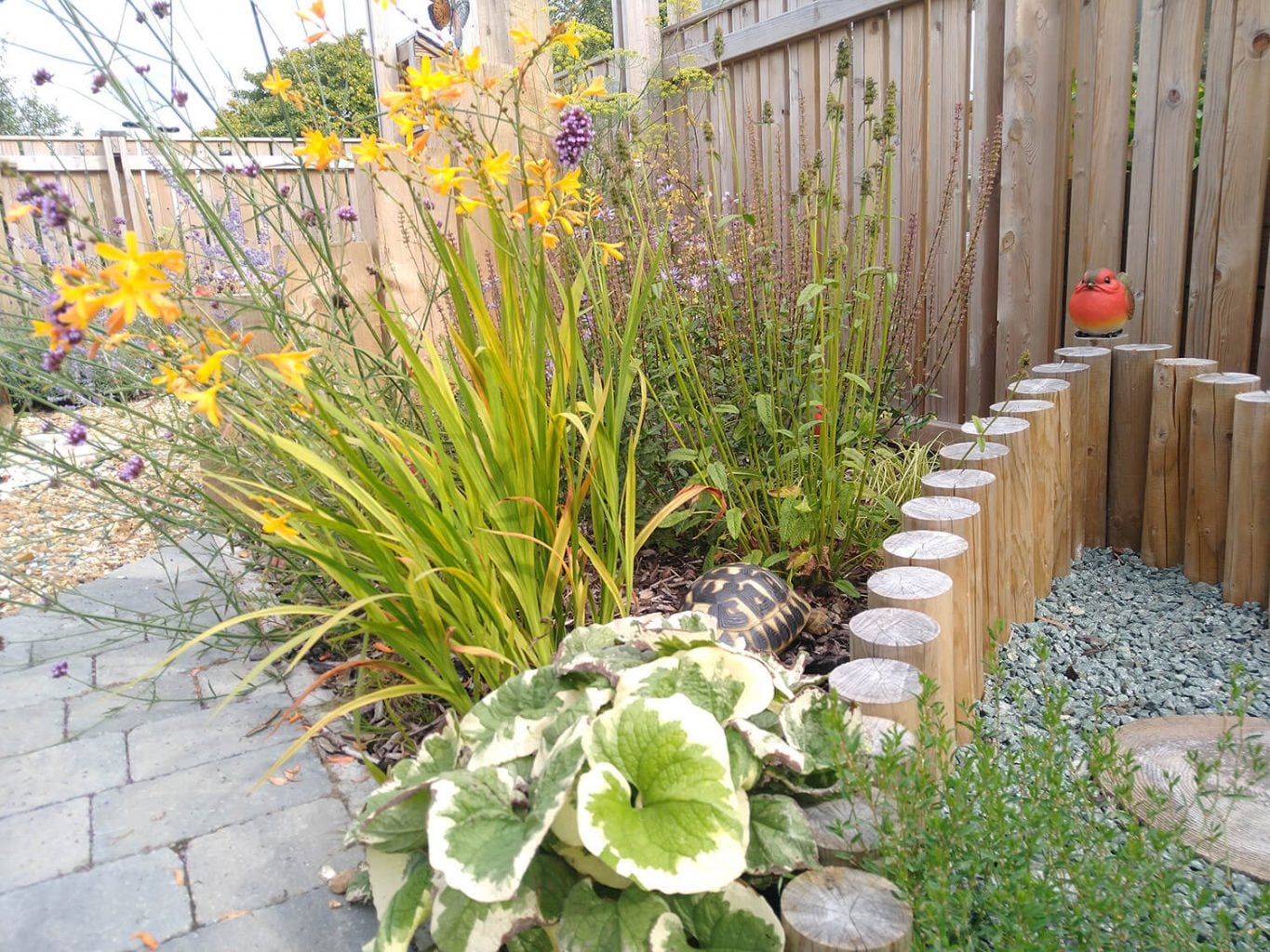 The design of the Magical Garden came together with help from children visiting the hospice. From specifying that they wanted it to feel “peaceful”, “happy and friendly”, through to making suggestions on planting (“colours such as purple with orange and blue”), furniture and decorations (“water features, windmills, fairies, angels, solar lights, daffodils and seating such as benches”). The result is impressive.