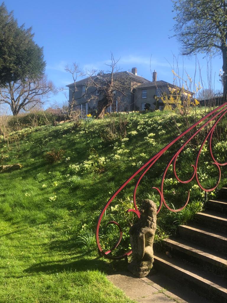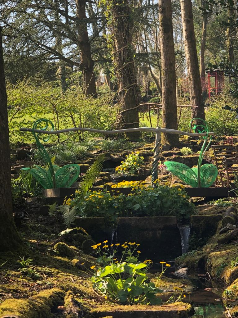 Meryl designed a conservatory – the perfect place for tea on a National Garden Scheme open day – and landscaped the space to keep car parking separate. And, at the front of the house, taking pride of place, a beautiful flame of steel created by the same blacksmith who has crafted the seating, railings and fern bridge throughout the garden. It’s clear to see that Meryl’s career in interior design has influenced the garden, her eye for shape, colour, form and structure shines through.