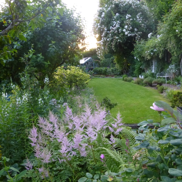 11 St Peter’s Close, which opens as part of the Bovey Tracey Gardens in Devon on Saturday 5 and Sunday 6 July, is a sloping, very colourful small garden. There are several terraces and good views over Bovey and Dartmoor with floral watercolours for sale and a small railway running through the garden. Click here for details.