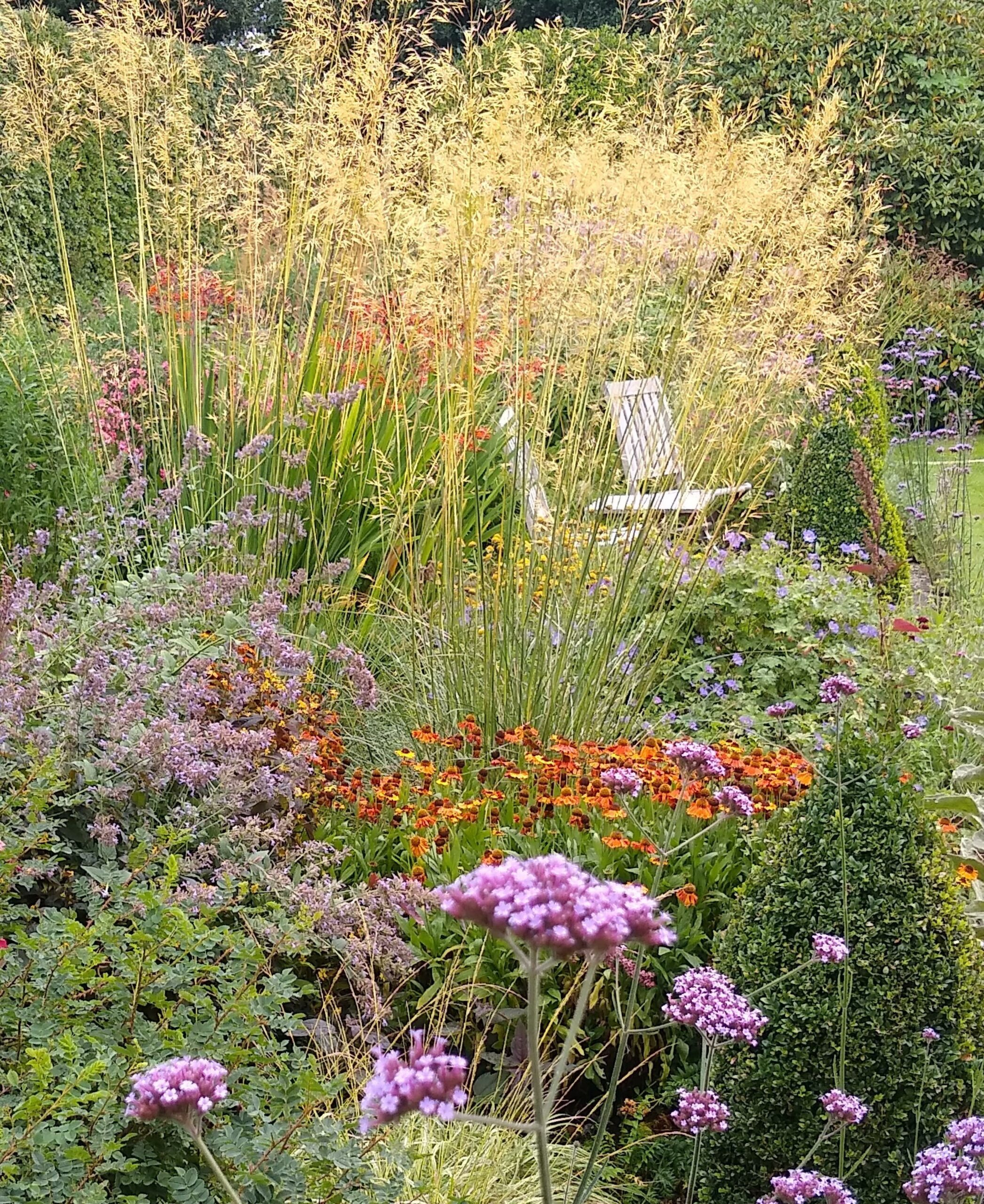 Kelvedon Hall. A varied six acre garden surrounding a gorgeous C18 house. A blend of formal and informal spaces interspersed with modern sculpture. Pleached hornbeam and yew and box topiary provide structure. A courtyard walled garden juxtaposes a modern walled pool garden, both providing season long displays. Herbaceous borders offset an abundance of roses around the house. Lily covered ponds with a wet garden. Click for details