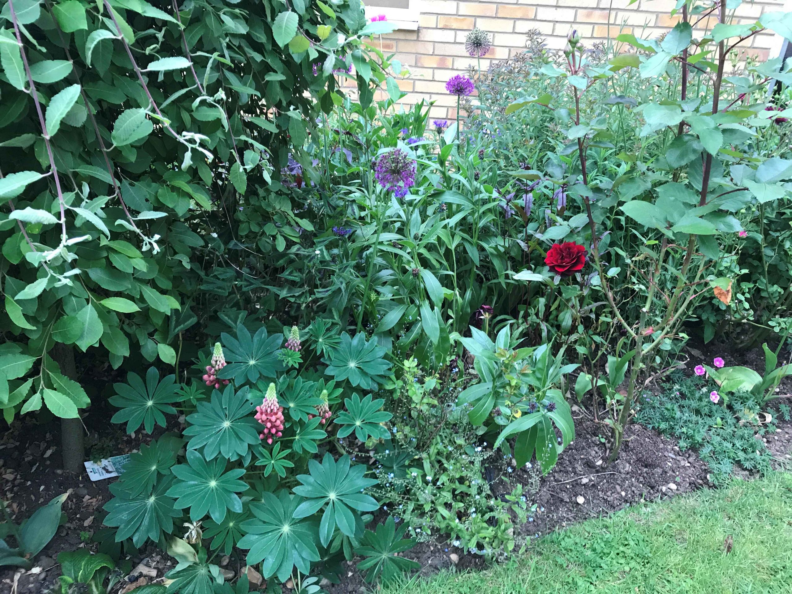 Caroline’s lovely family garden in Welwyn Hertfordshire has been developed over the last ten years. There’s access to surrounding woodland from this medium sized multi-purpose family garden with an eclectic mix of planting. A variety of bulbs, perennial borders and mixed shrubs provide all year round interest and colour. There are foxgloves, alliums and hellebores throughout the many beds and some hungry chickens too!