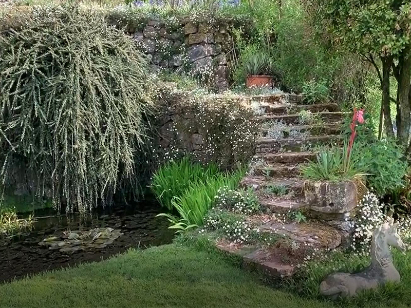 Today, Chevithorne Barton is lived in by May’s great grandson Edward who, together with Bluebell the dog, takes us on an enchanting virtual tour of the garden: