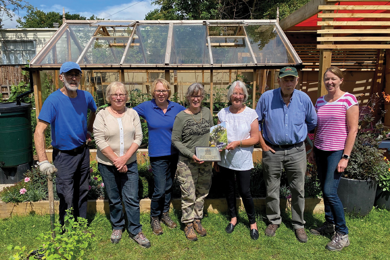 Lead image: Volunteers and gardeners from Grange Farm Community Garden, Essex joined Doug and Susan Copeland (second and fourth from left) for the opening of the garden and the presentation of the commemorative plaque