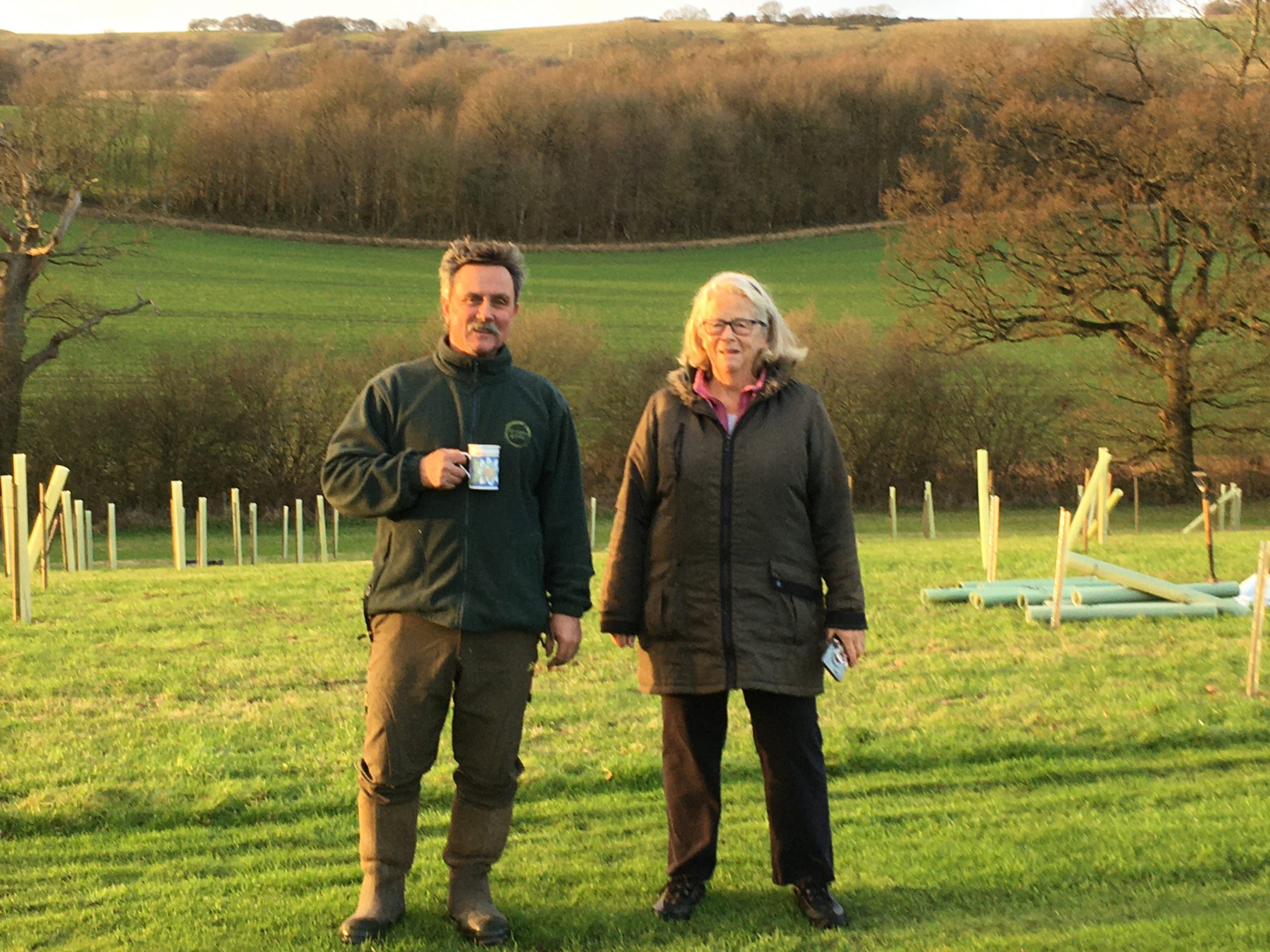 The week before Christmas, Wiltshire’s County Organiser, Amelia Tester and Publicity and Booklet Co-ordinator, Tricia Duncan joined Assistant County Organiser Diana Robertson in her field in the wonderful setting of Pewsey Vale looking up at Martinsell Hill to be part of something special; to witness the creation of a new woodland.