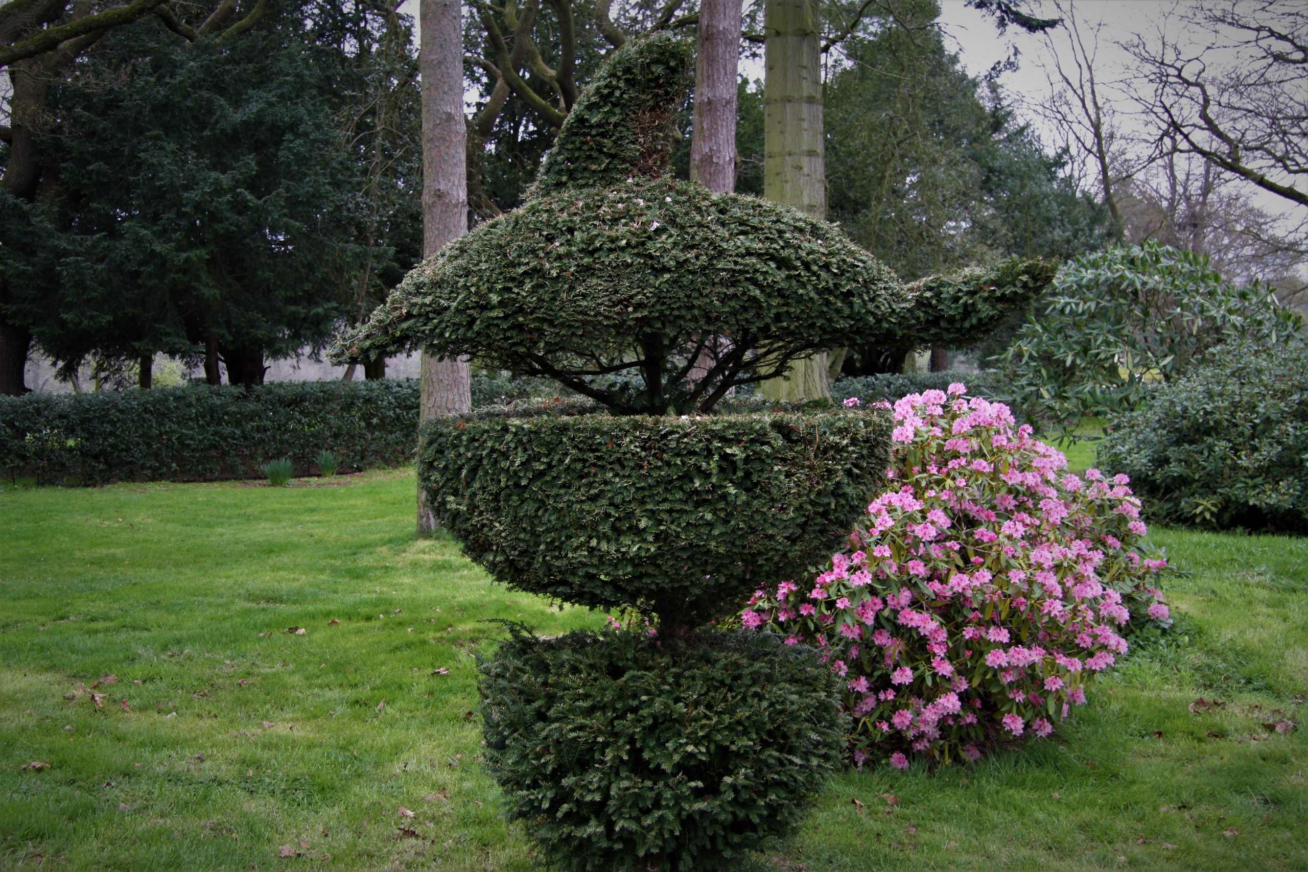 Karen’s most characterful addition has been a variety of humourous topiary with insects and hidden faces among an array of characters that are especially popular with children – as is the treasure-hunt. In May banks of rhododendrons and azaleas burst into colour, while the water garden is further testament to the extensive restoration that has been carried out.
