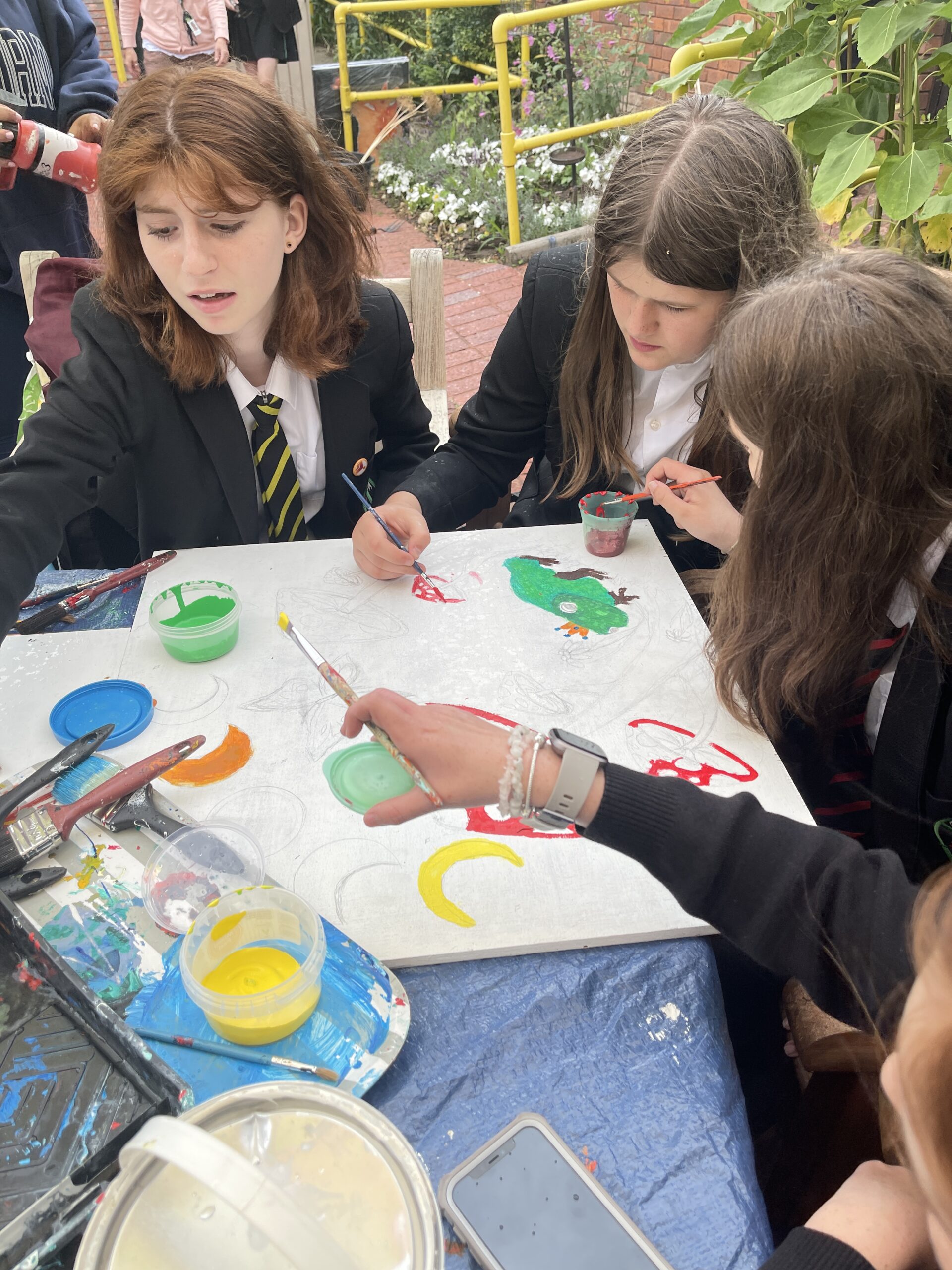- Priory School students creating art to brighten the space