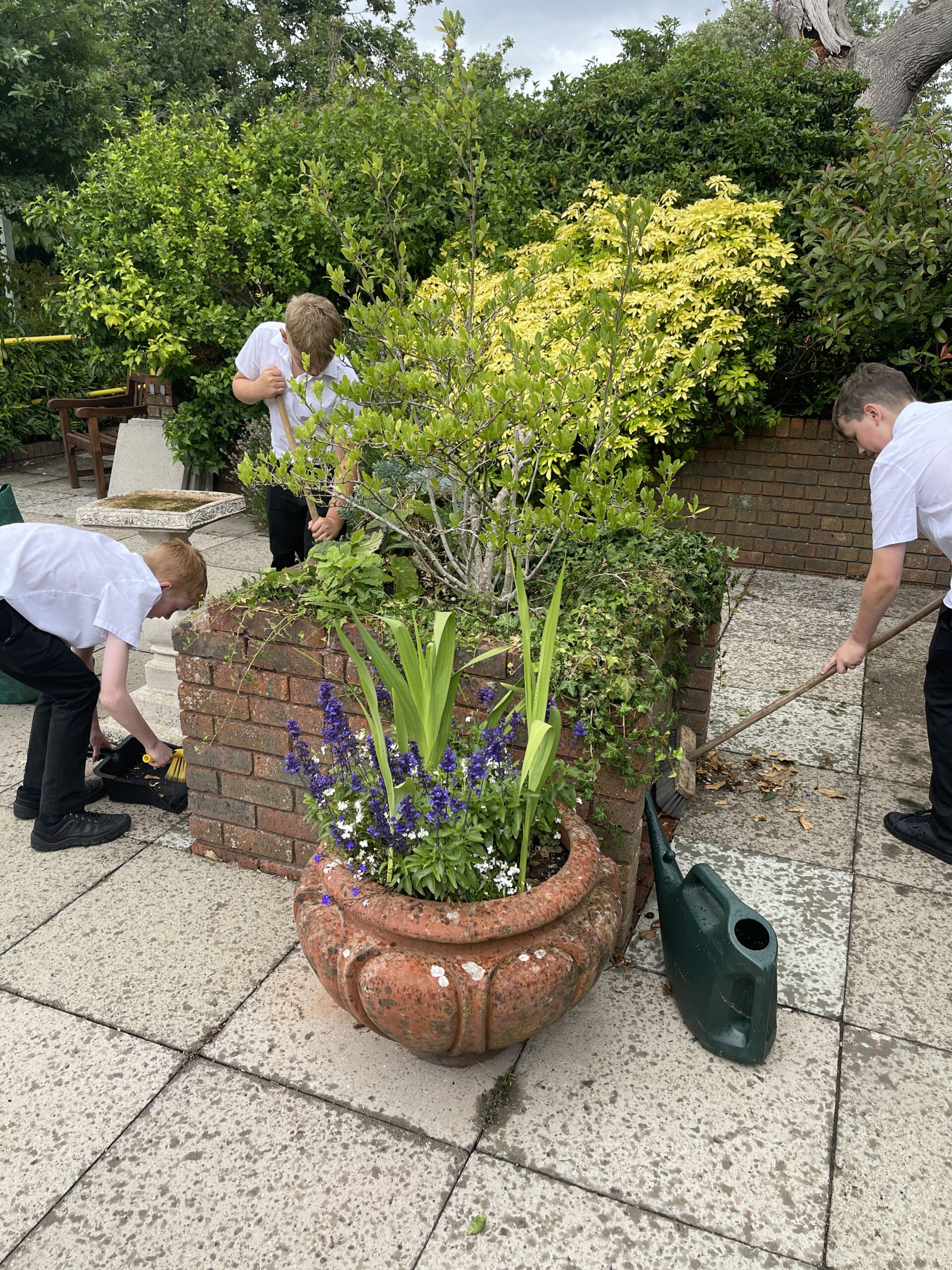 - Children from Priory School helping out
