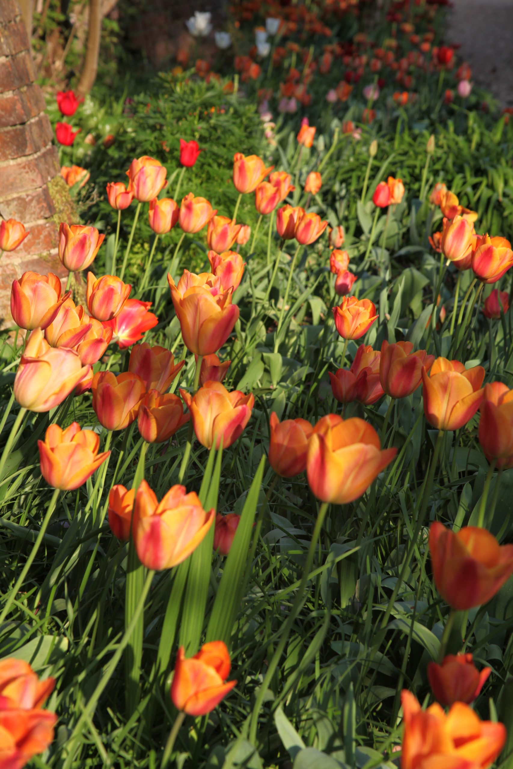 The white’s include; Maureen, white Purissima, Triumphator, Spring Green, Mount Tacoma and Clear Water. The hot reds and oranges include; Red Riding Hood, Beauty of Apeldoorn, West Point, Princess Irene, Blushing Apeldoorn and Holland’s Glory. In the Dutch garden, Caroline has planted Pink Impression, Blushing Girl, Rosalie, Dreamland, Flaming Flag, Laptop and one of her favourite combinations Shirley and Magic Lavender.