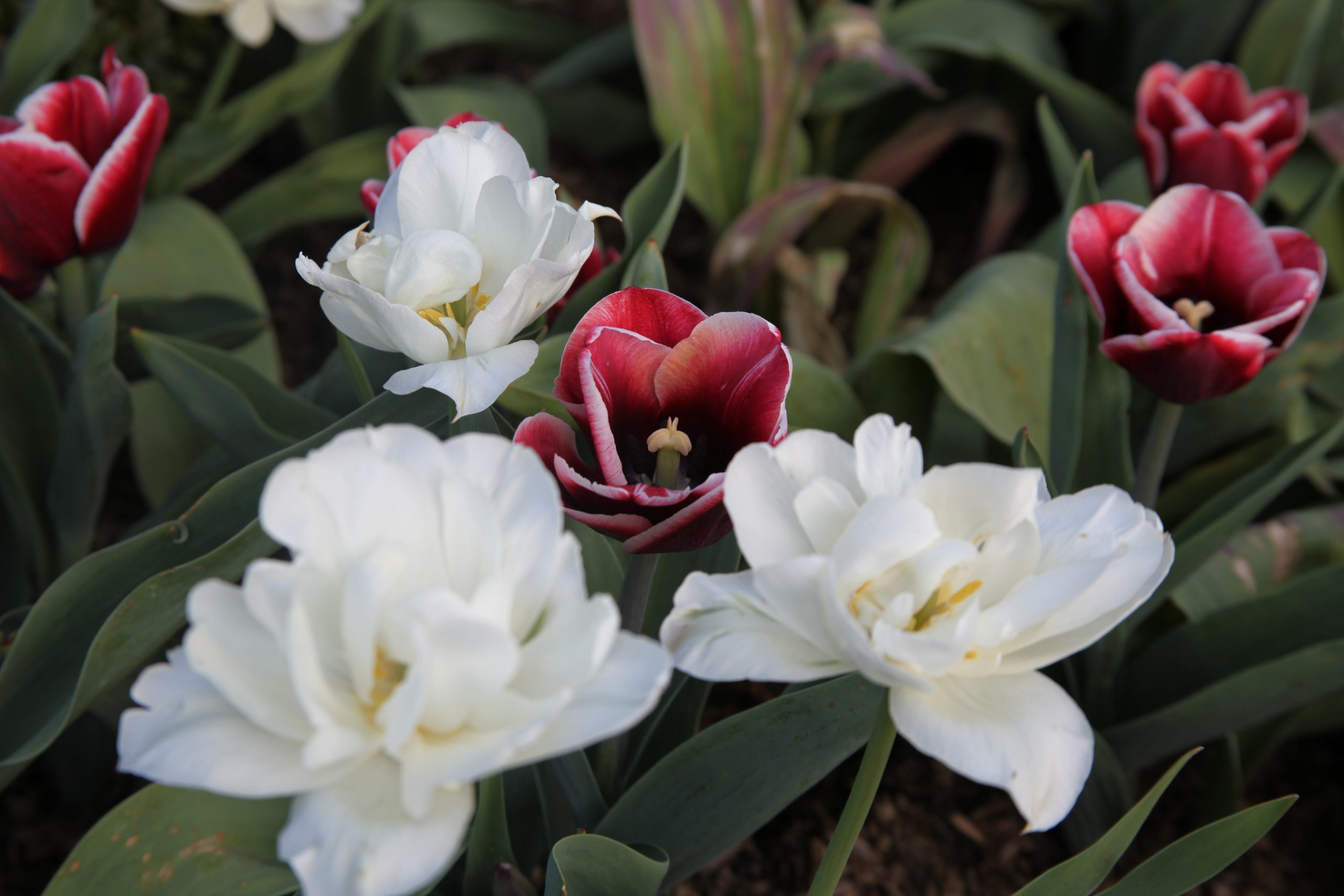 With over 20,000 bulbs planted for 2020 the gardens host 14 varieties of tulip in 75 variations, sourced each year from Holland, from the following: Single early, Single late, Double early, Double late, Triumph, Darwin hybrid, Lily flowering, Fringed, Viridiflora, Parrot, Kaufmanniana, Fosteriana, Greigii, Sylvestris.