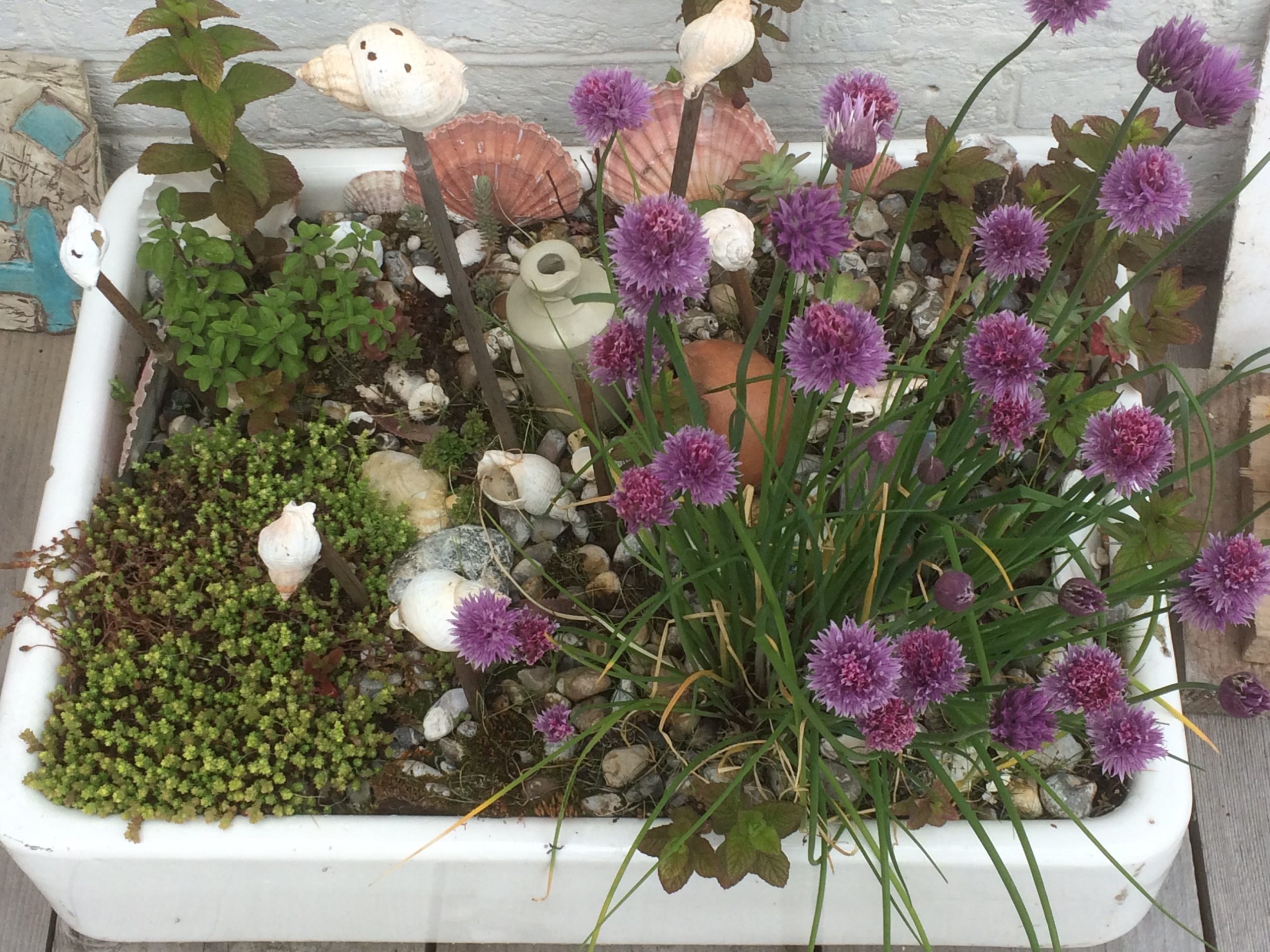 The visit begins at 19 Joy Lane, where Garden Owner, Francine, started her garden from scratch just eight years ago. Her passion for succulents is obvious as you are welcomed in a porch overflowing with interesting and exotic plants. In the garden, container-grown veg and herbs are in abundance and hens mill around – bringing typical country views to the seaside.