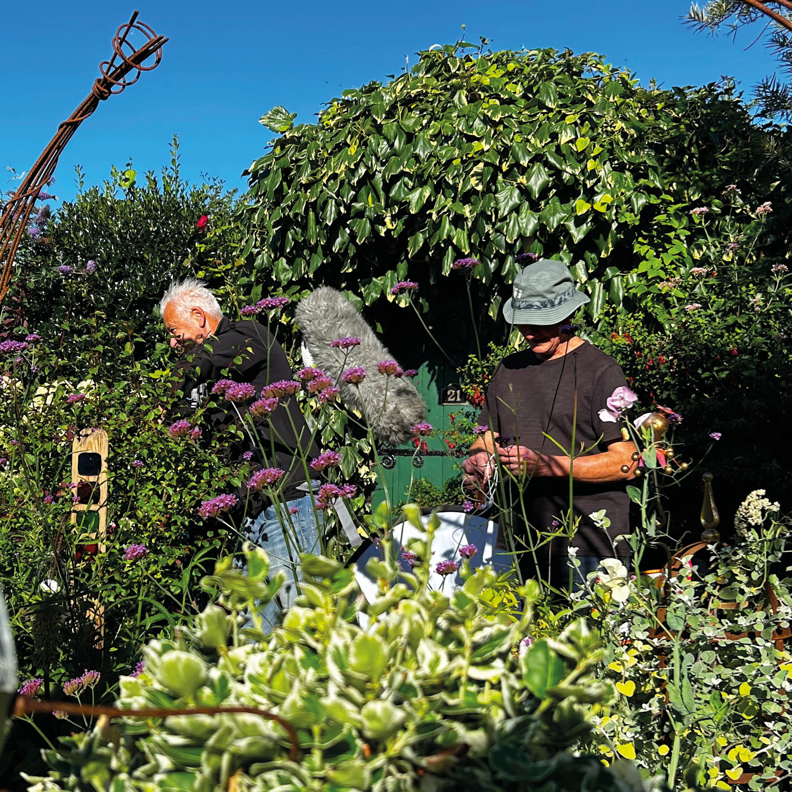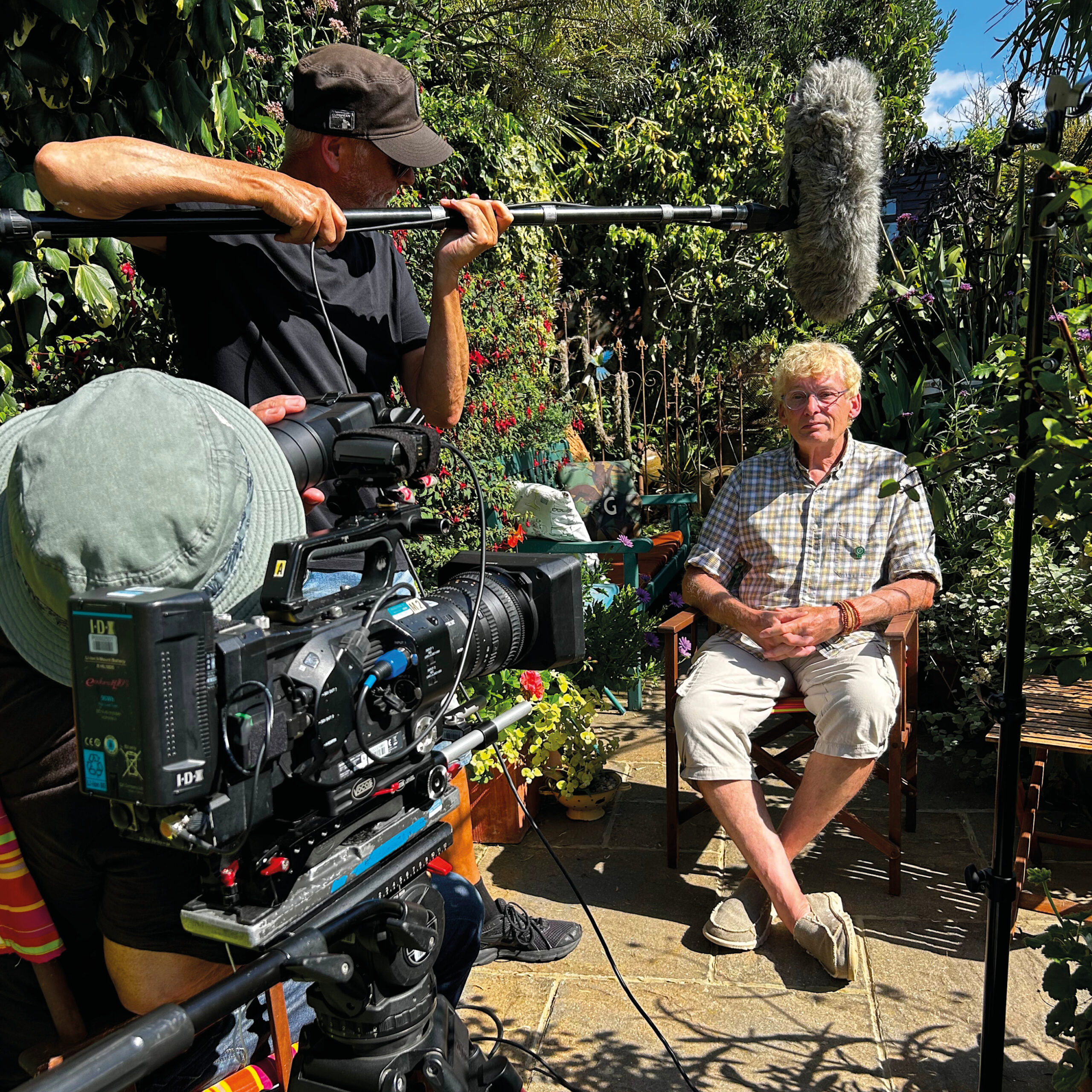 On the morning of filming Geoff was up at 5:30am making sure everything was perfect, some final dead-heading, cushions and furniture out and a last minute walk around to make sure everything was picture perfect. They were blessed with a lovely sunny day and when the crew arrived just after 8, the best area for filming was picked out and the interview was underway.