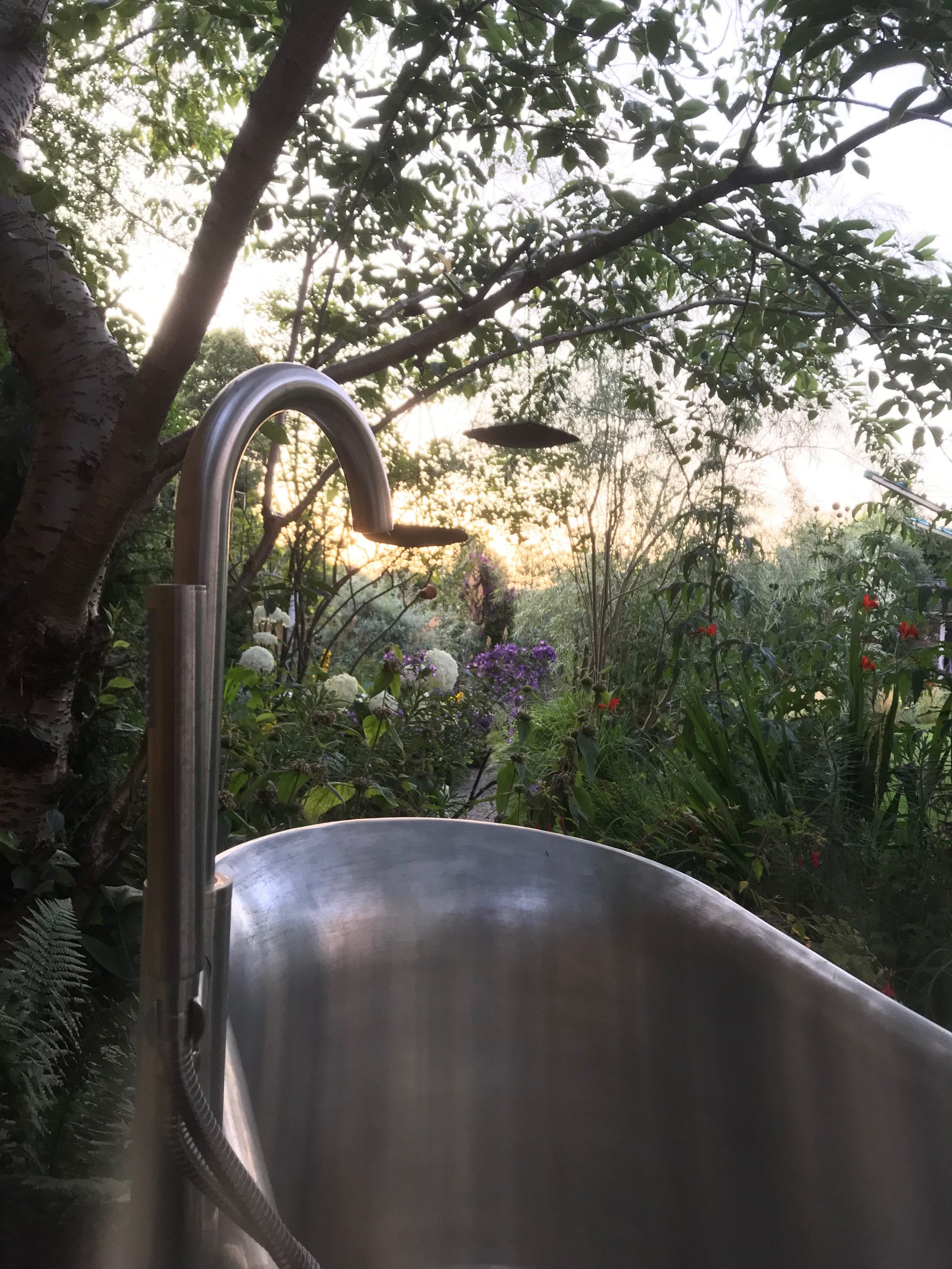 Our garden does have an actual bath too and for this you would need your bubble bath! We can’t run the bath today, but you are most welcome to take your shoes off and sit in the bath, lie back and enjoy the experience of being cocooned in the deep smooth metal bath.