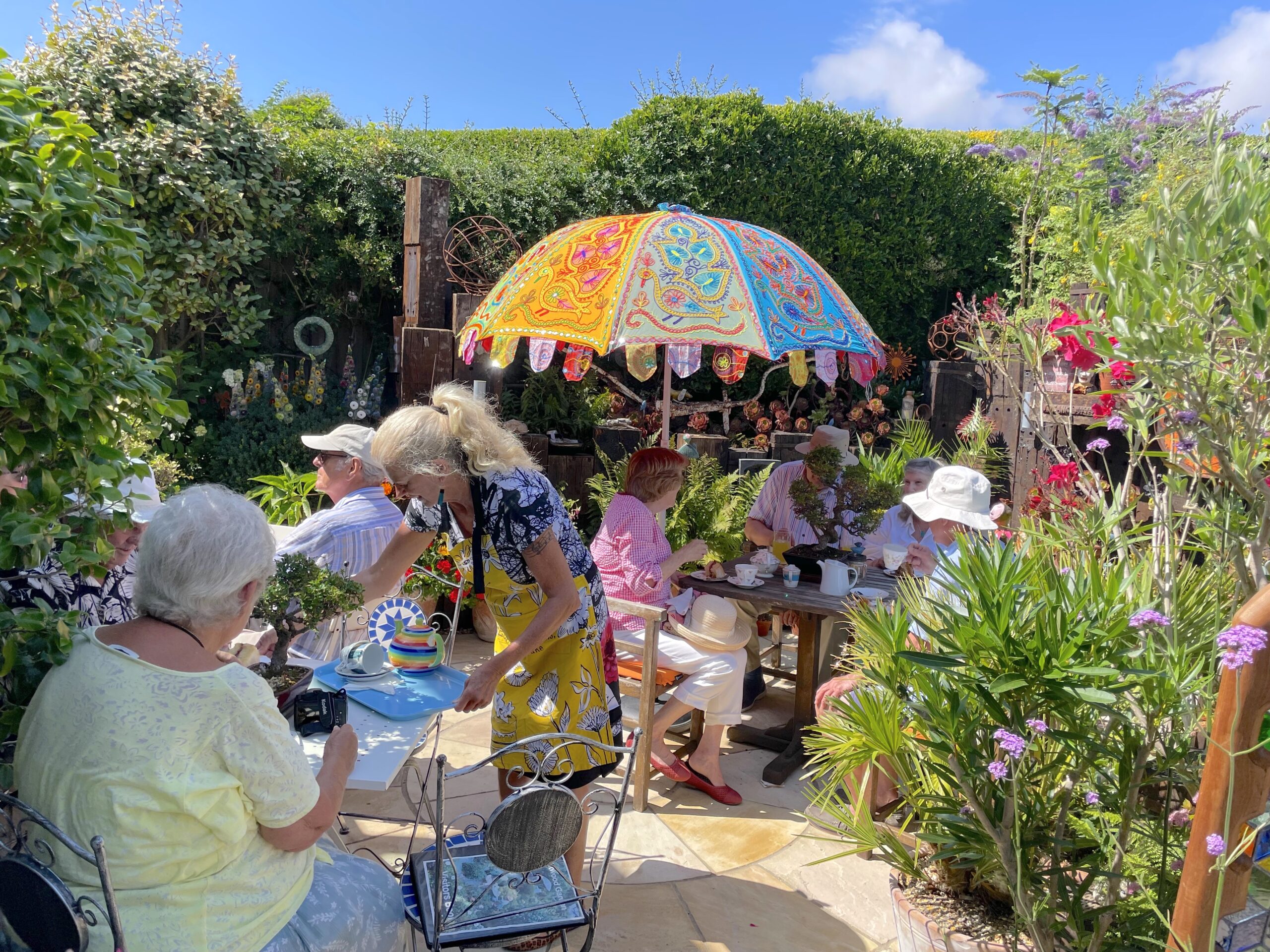 - Tea and cake served in Geoff’s garden, Driftwood