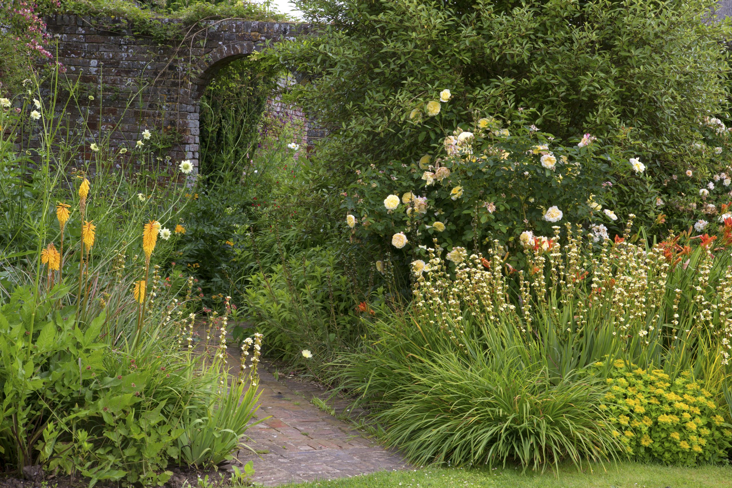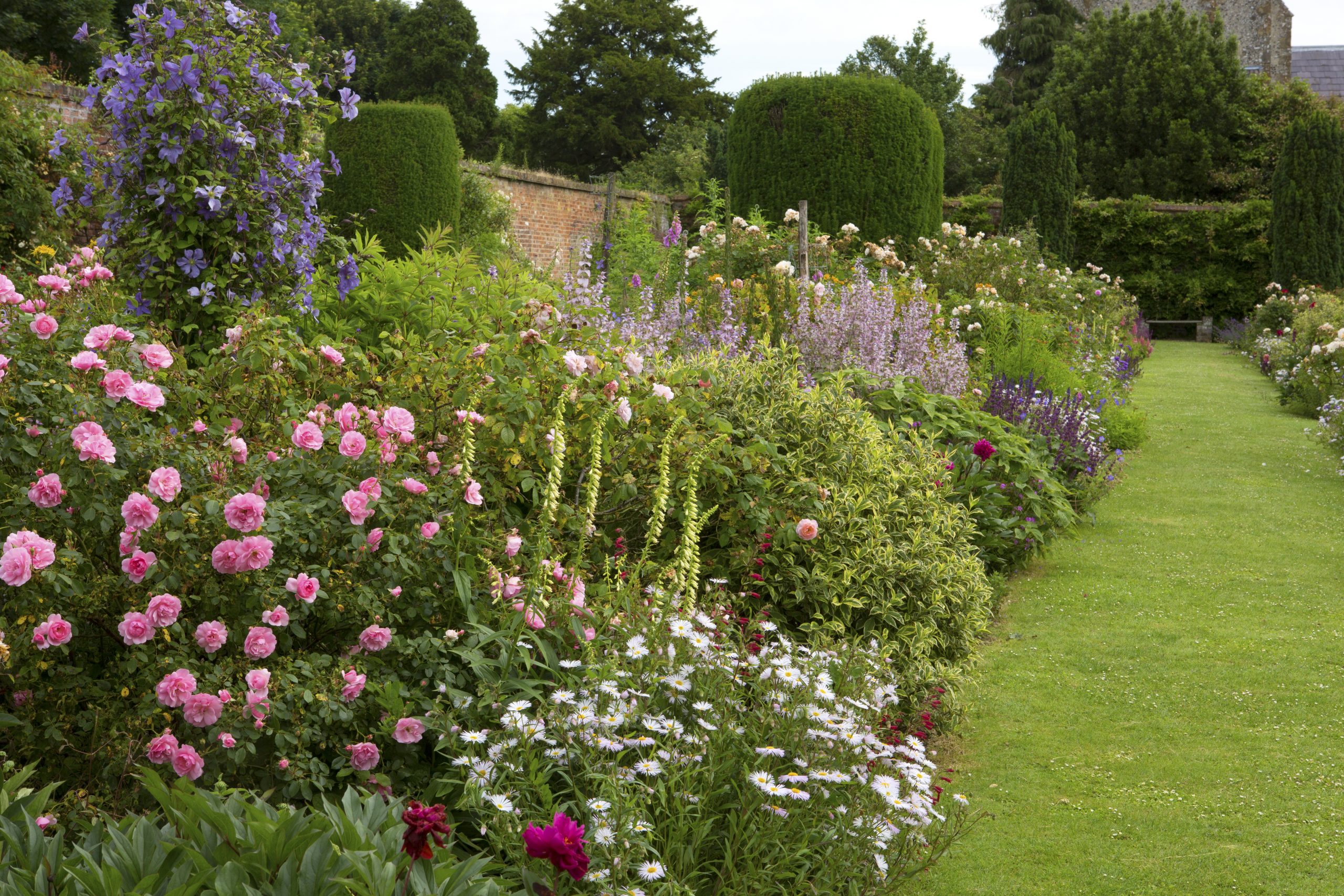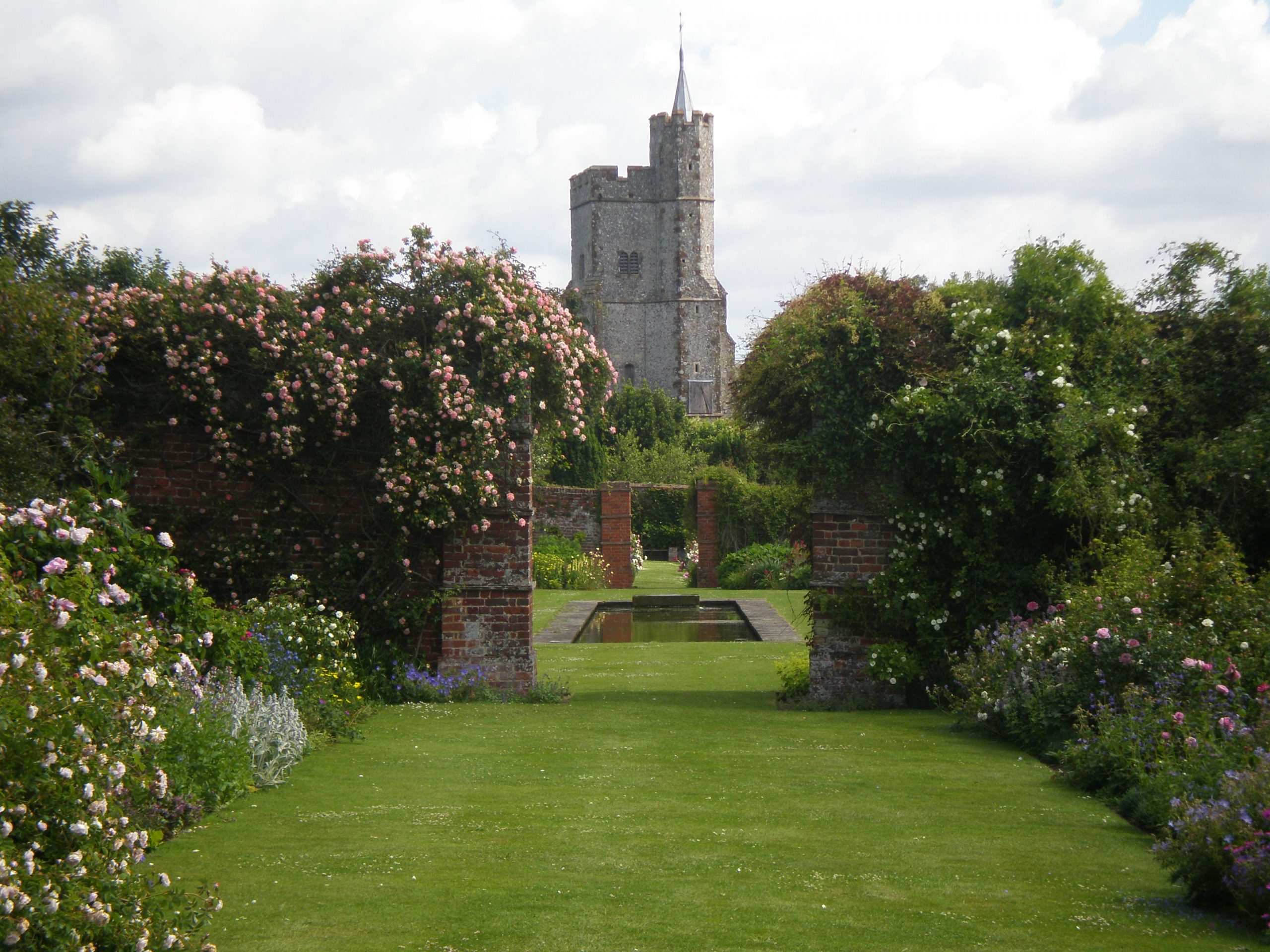 The secluded walled garden with its long view across roses, water and flower borders to the tower of the village church is somewhere visitors come and sit for hours on end. Elsewhere there is the woodland garden to discover, characterful terraced lawns on either side of the house, an array of fine trees and views out from terraces in front of the house across the village cricket ground and parkland beyond.
