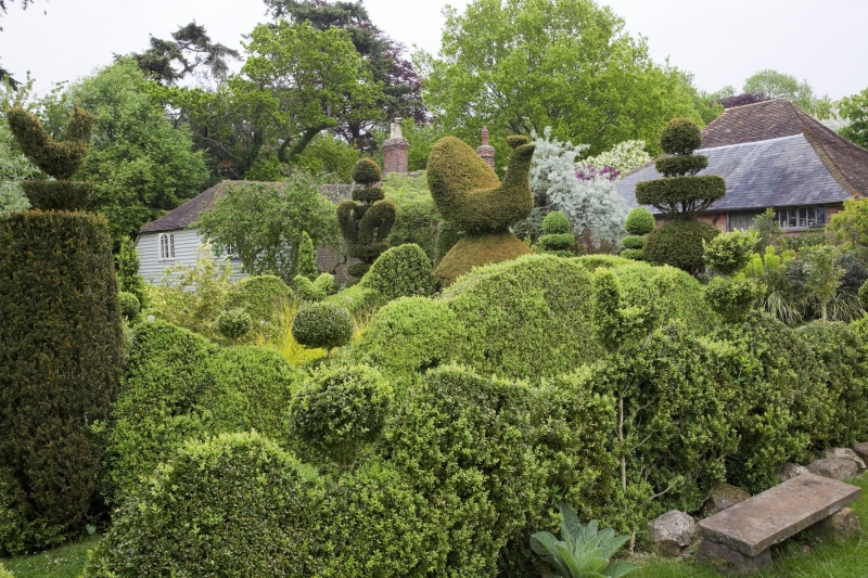 A fabulous varied, romantic garden with extensive topiary and organically managed vegetable gardens.