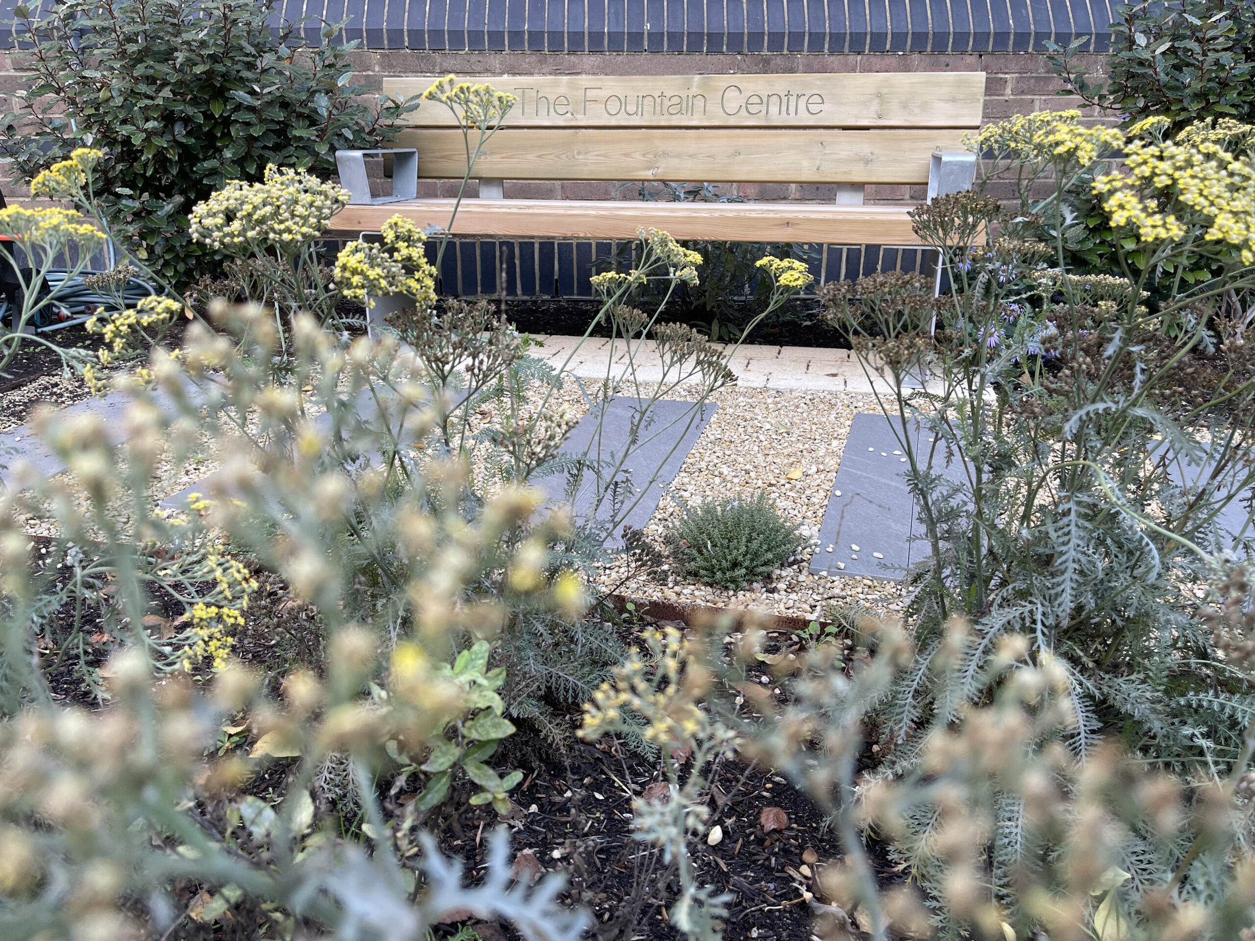 A Community Garden Grant from the National Garden Scheme has helped fund planting and hard landscaping at The Fountain Centre, an independent charity supporting cancer patients and their loved ones. With space provided by the Royal Surrey County Hospital next to Oncology Outpatients, the centre is equipped with treatment rooms, counselling spaces, a lounge, a kitchen, office and a garden and is now an integral part of the hospital’s cancer department, offering refuge and support to all cancer patients.