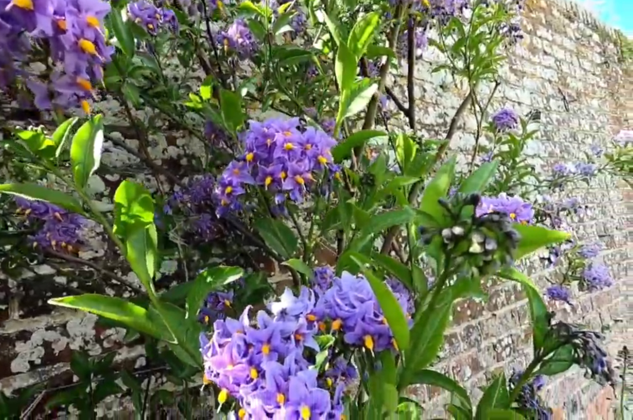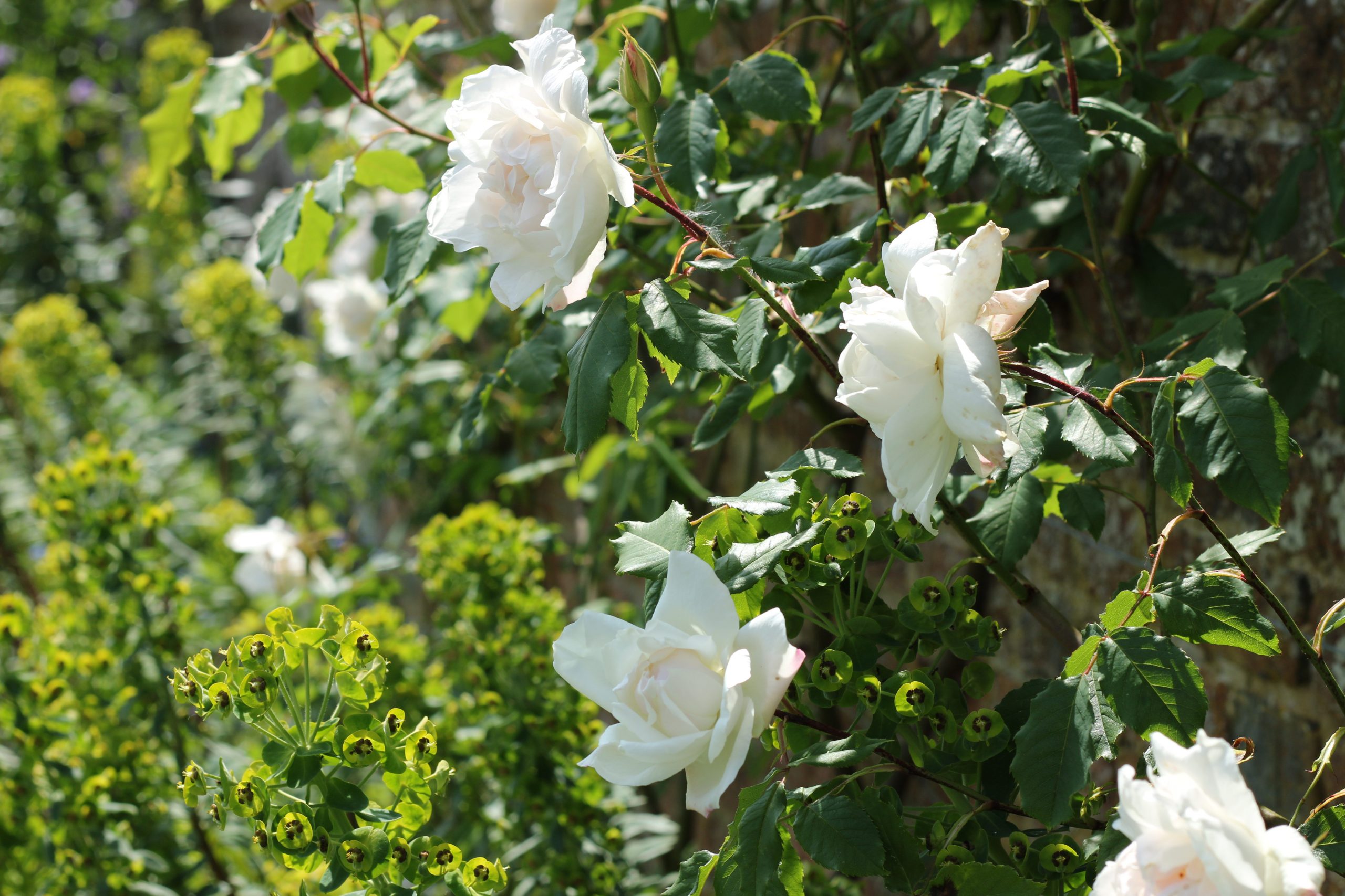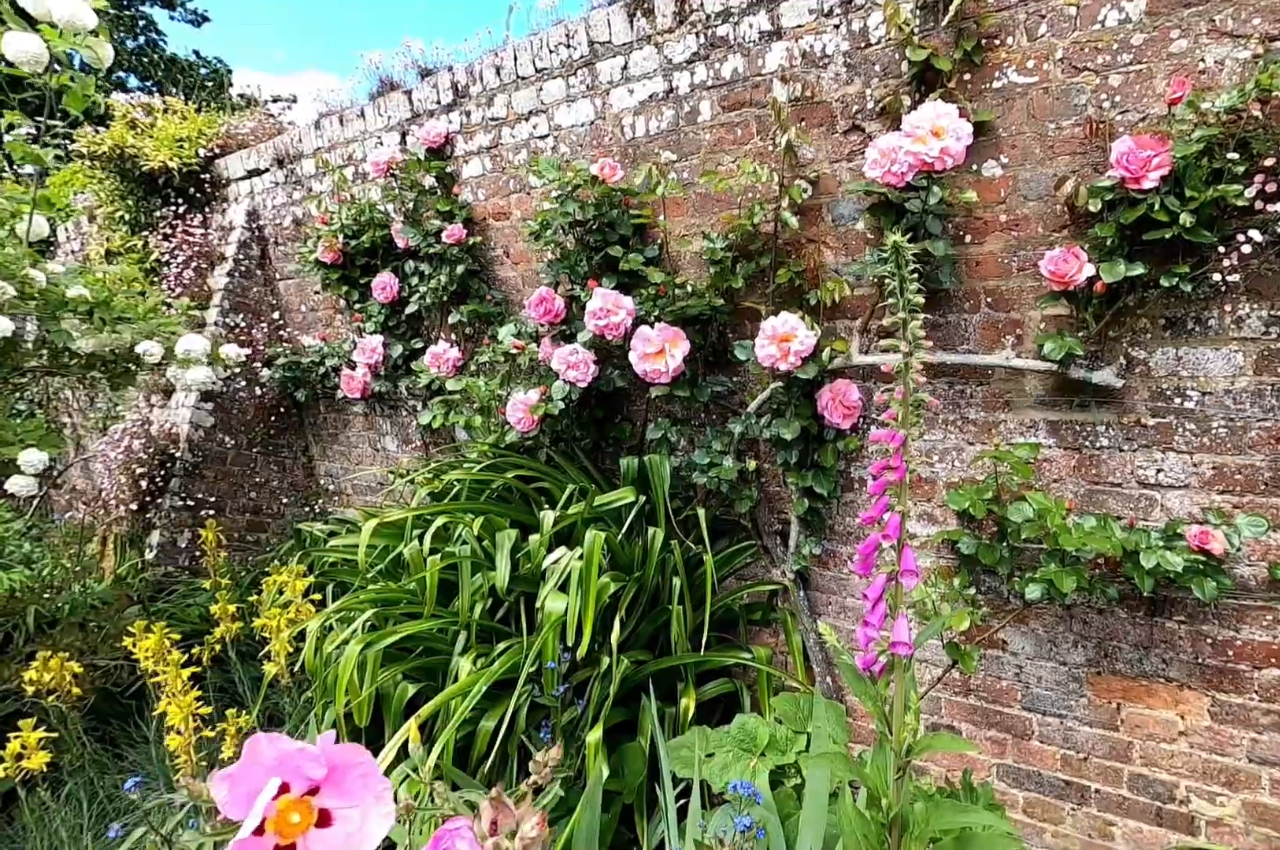Sadly Frances’ original secret gate was bricked up during a renovation of the garden in the 1910s by Lutyens, in partnership with Gertrude Jekyll. However, this new gate seemingly inspires the same charm and wonder. Stepping towards it, you’ll catch glimpses of the formal garden concealed inside. Across the walls white and pink roses vine the old brick, and foxgloves, euphorbias and Solanum crispum Glasnevin create a colourful planting scheme below.