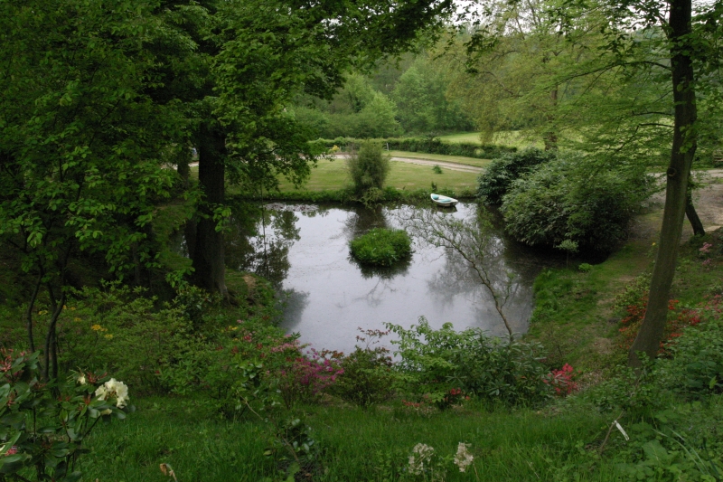 There’s year round interest in this garden with colour bursting from the many borders, rhododendrons and winter garden. In the summer, near the house, colour bursts from everywhere. A stream flows through the bog garden down over waterfalls into a bluebell carpeted wood in spring. There is a natural amphitheatre within an old sandstone quarry, often used for plays and concerts, and sculptures and mechanical contraptions giving added interest.