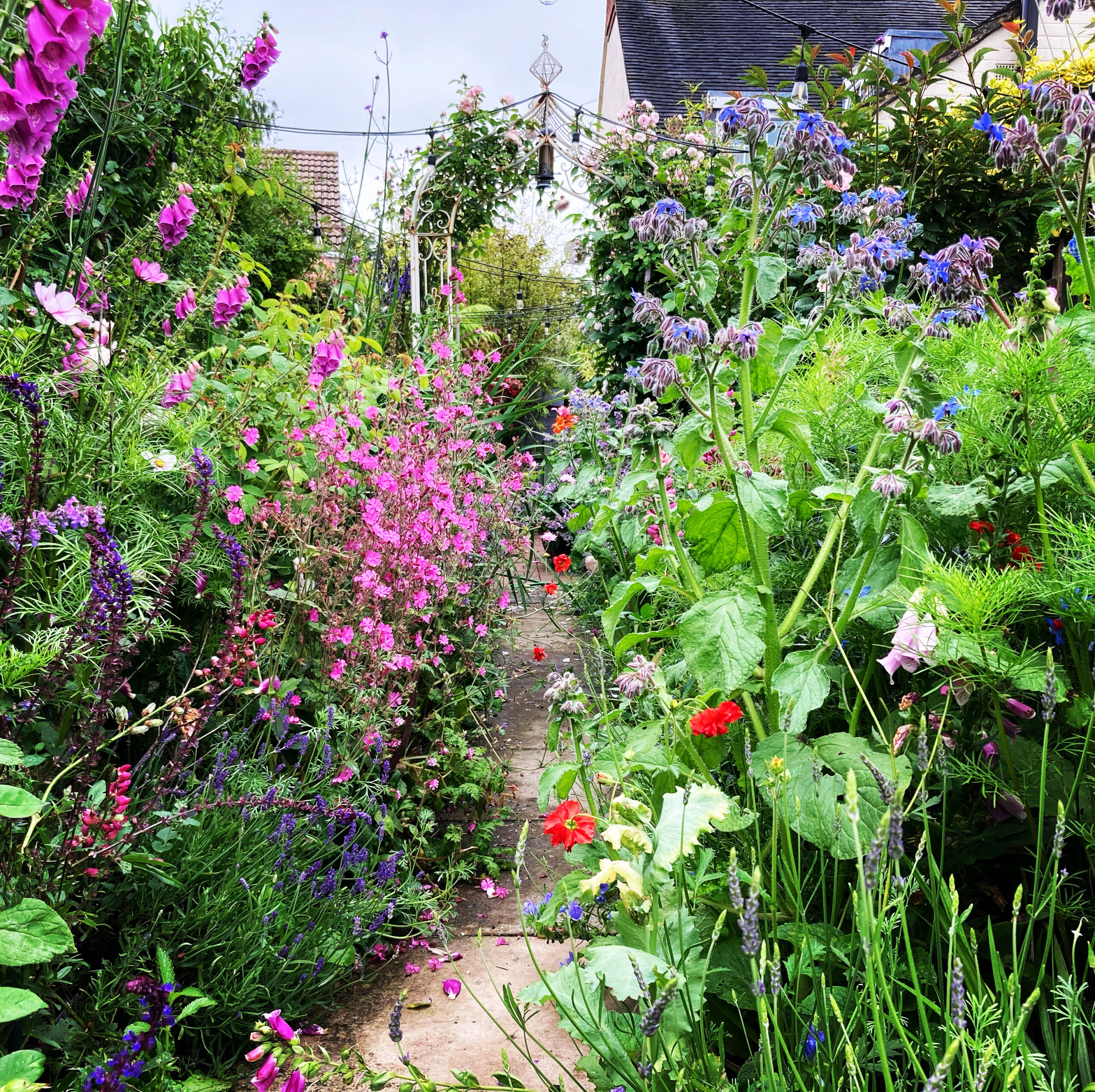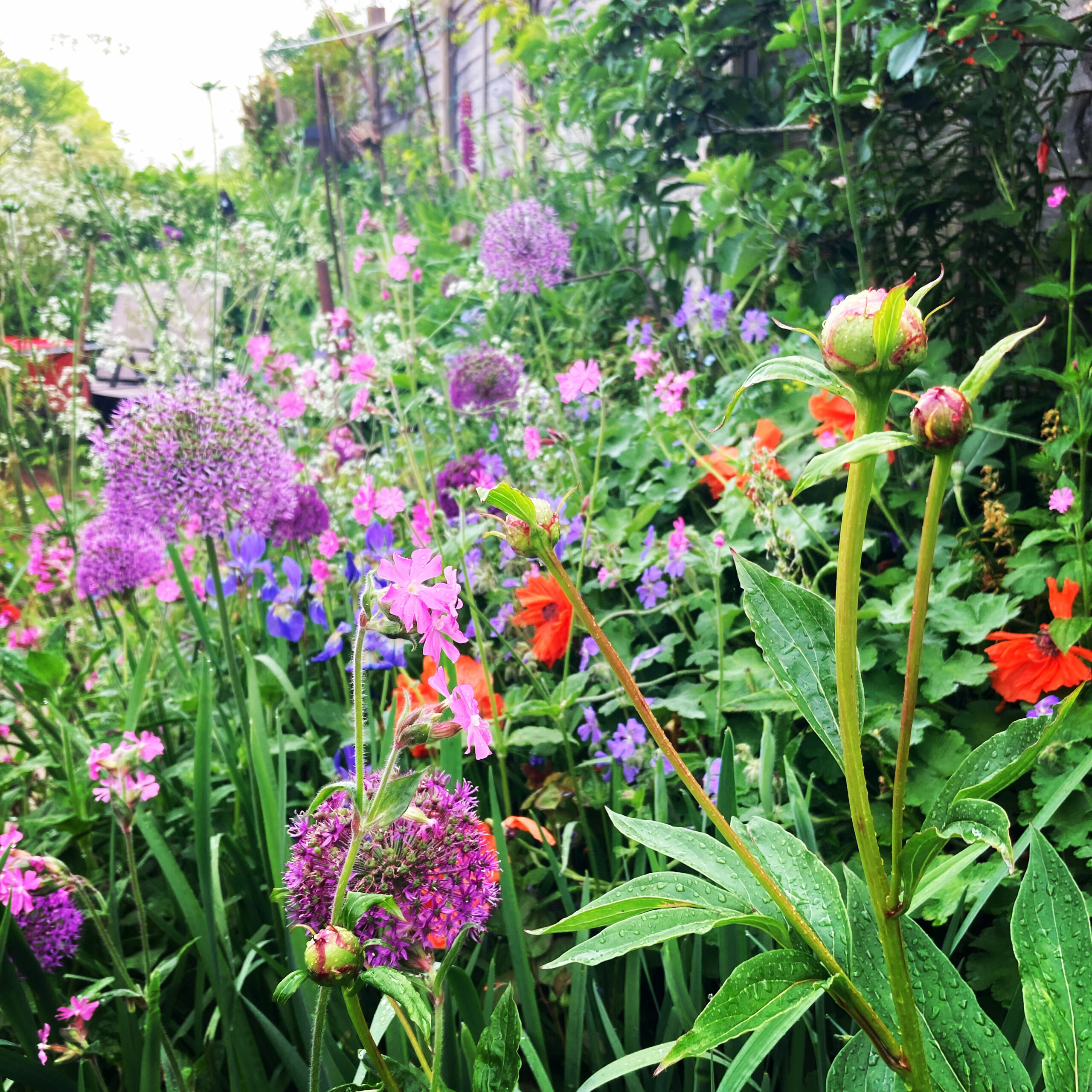 Since opening our garden for the National Garden Scheme, the value and benefit that gardens bring to us all has become even more apparent to me. We have found that some people often sit and immerse themselves in our garden, taking in the atmosphere and pausing for a moment to reflect. Others come for the tea and cake, or for the plant stall, whilst still more come for inspiration in both design and flower variety (particularly for pollinator-friendly flowers!). Whatever the motivation, what is clear is one common theme: people are happy in the garden! And everyone loves to talk about gardening; people asking what plant is what, what their garden looks like, what they love about gardening, sharing advice, cutting requests, do we have any of that particular plant in flower for sale (last year the 5 foot Teasel and Chicory were popular – sadly we didn’t have any in a prepared pot for sale!). We were lucky to visit the Big Bloom at the Tower of London last year, and we saw exactly the same thing on a larger scale and with a bigger contrast, having the old and new London landscapes of the Tower and buildings such as The Gherkin in the backdrop, whilst bees and butterflies went about their business en masse amongst the beautiful swathes of wild flower meadows expertly created by Professor Nigel Dunnett and colleagues.