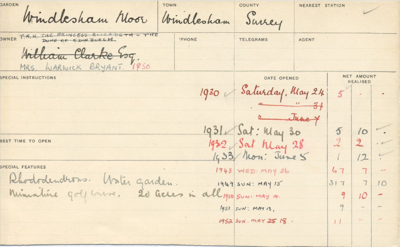 More than at any of her other homes, The Queen’s support for the National Garden Scheme was demonstrated when in 1948, just a few months after her marriage she opened the garden of Windlesham Moor in Surrey, the first country home that she shared with the Duke of Edinburgh. The garden was open again in 1949 the year that Princess Elizabeth and the Duke of Edinburgh moved to live in Malta where The Duke was posted by the Royal Navy.