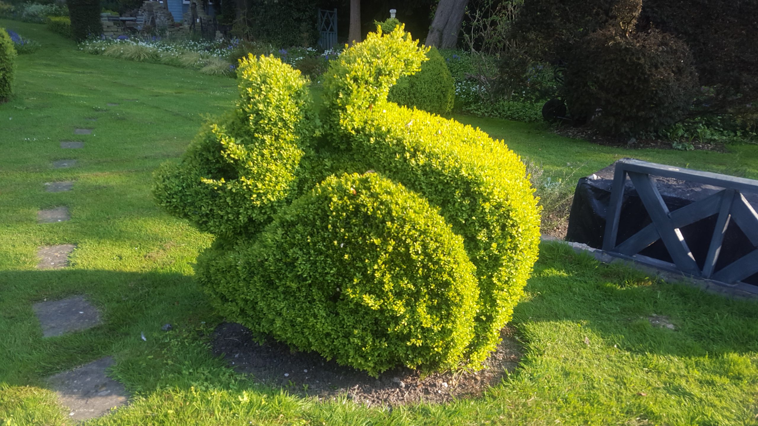 You can have a lot of fun with box as it is quick growing and leafy to the core; therefore very easy to shape and you see results relatively quickly. All the animal shaped bushes have a face to give them character. It is ideal for anyone to have a go as if it goes wrong you can change the idea or wait for it to grow and start again.