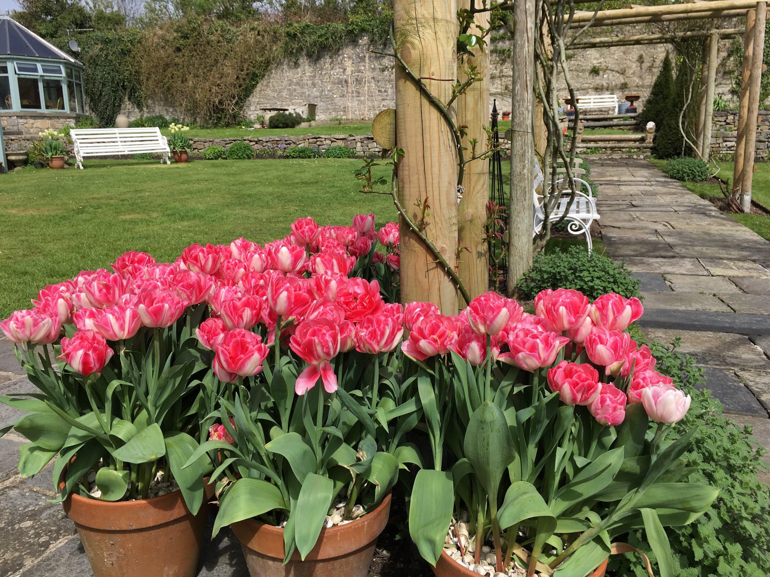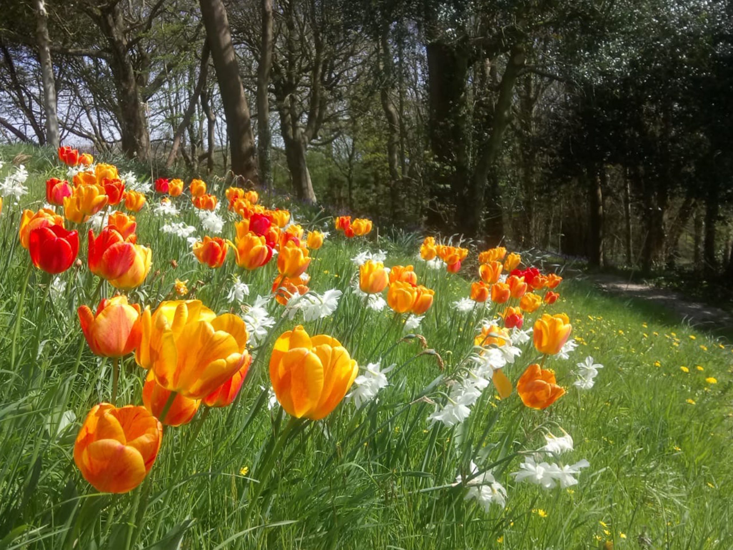 In April the garden is enlivened by spring bulbs and fritillaries, and the Garden Owners, Rosamund and Peter Davies, have taken advantage of their seaside setting to create a magnificent tulip display.