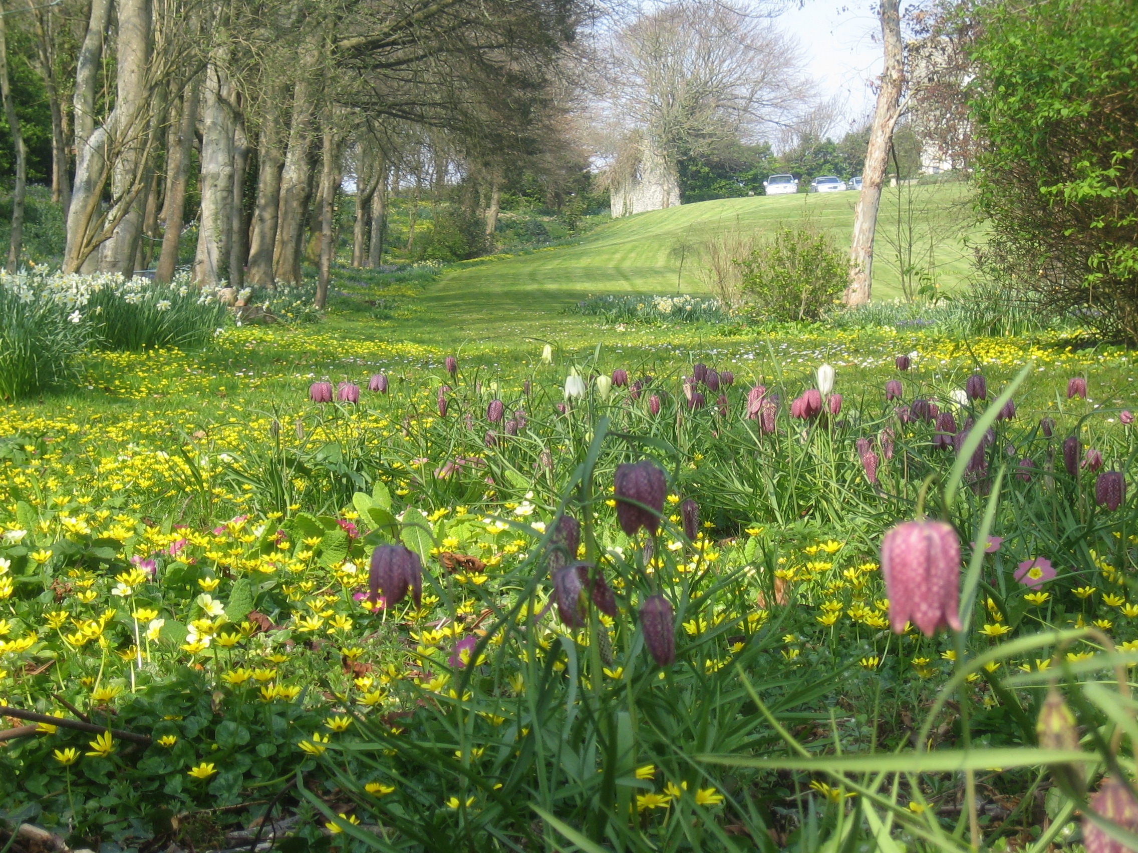 - From terraced lawns great sweeps of grass stretch down the hill enlivened by spring bulbs and fritillaries.