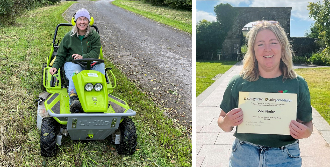 - Using machinery on her Estate rotation and Zoe with her Work Based Learner of the Year certificate
