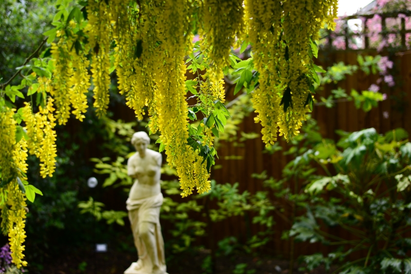 Approx ½ acre divided into garden rooms with formal and informal planting plus specimen trees. Inc formal white garden, rose garden, sunken Italian garden, rose and wisteria pergola and laburnum arch, Edwardian conservatory, terracotta garden and well garden with raised beds. Sept opening to view garden lit up at night. Opens Saturday 20th September.