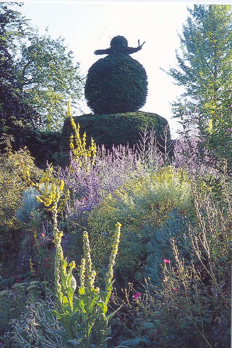 One visitor wrote last year; ‘It was really therapeutic to sit in the garden, everywhere we looked there was something different and of significant interest to see’. The charm of the garden, which totals over two acres, are its different levels, lichened walls and gates all overseen by the topiary ‘snail’- and finally, at the end, one of the best views in Hampshire. In the field are many English wildflowers, a haven for butterflies.