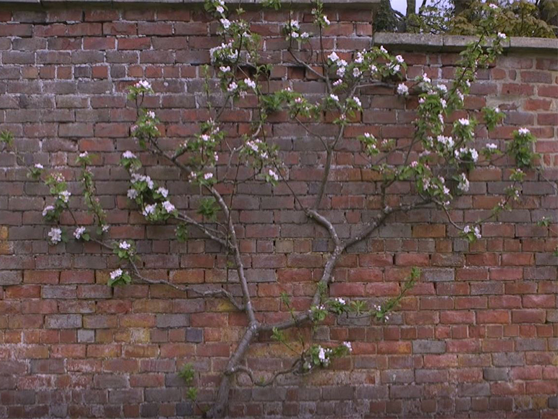 - Fruit trees grow against the wall in the kitchen garden