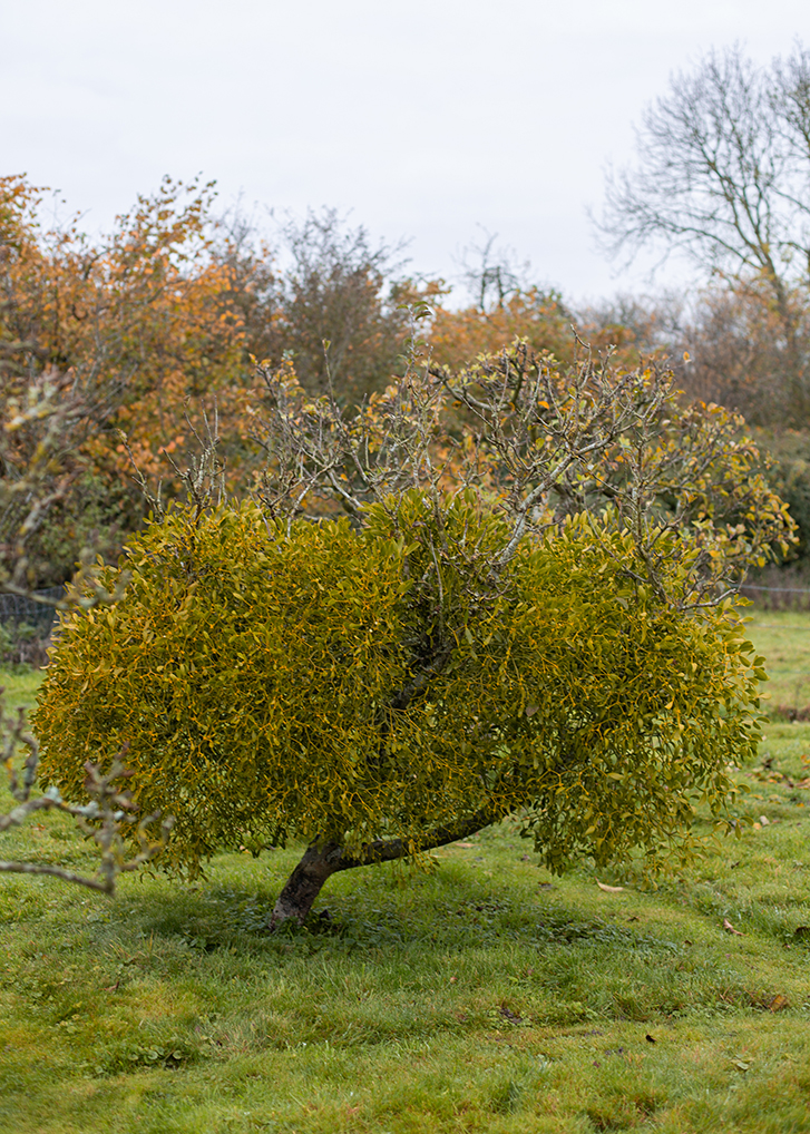 - An apple tree heavy with mistletoe