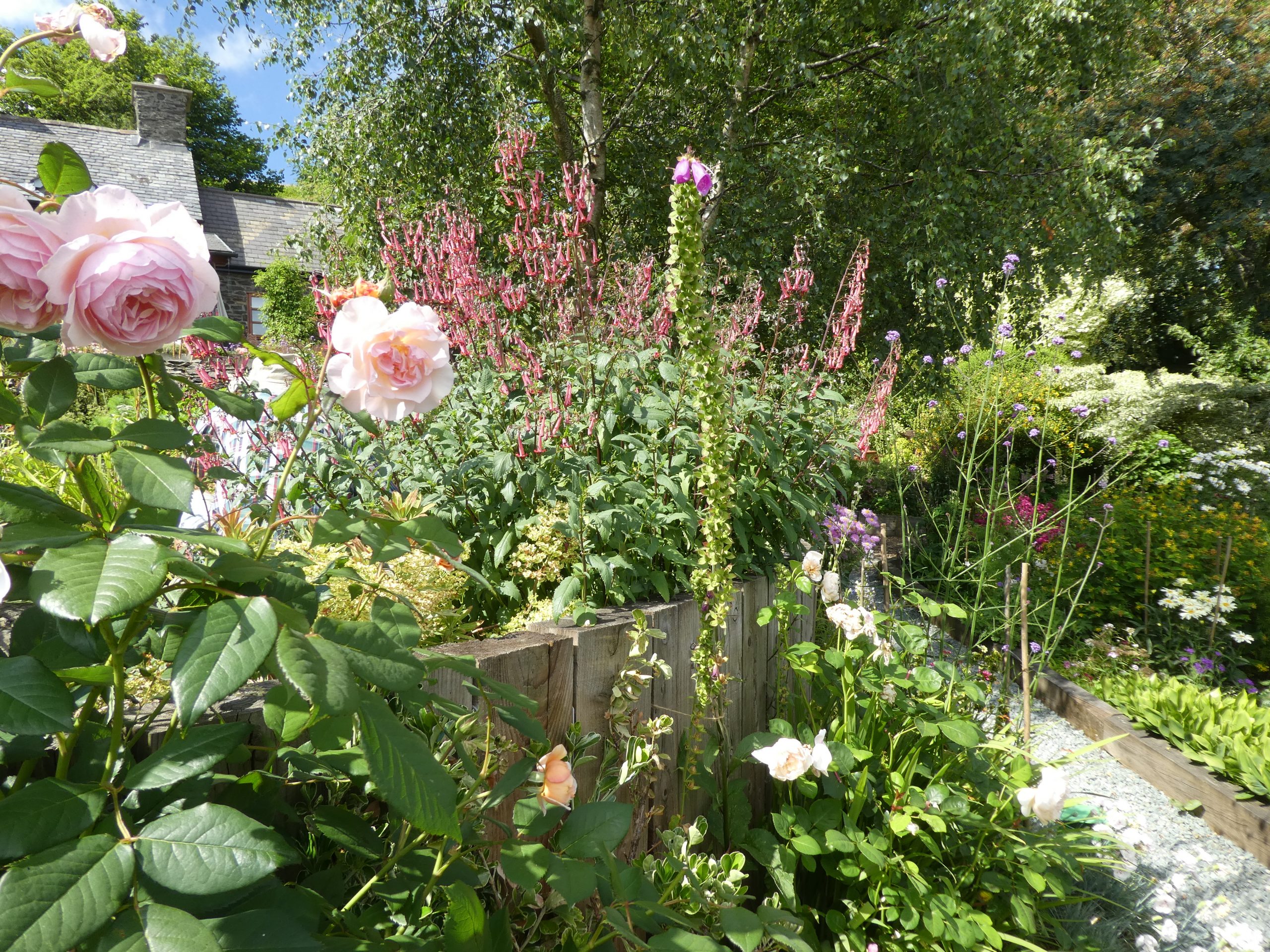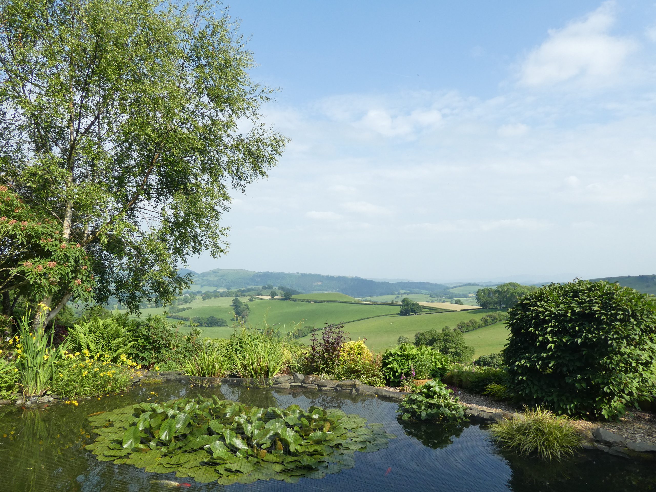 The garden at Moel-y-Gwelltyn-Ucha in Powys, North East Wales is a south facing terraced cottage garden set at 900 feet above sea level and nestled on a steep hillside in a stunning location. There are fabulous views towards Rodney’s Pillar and Long Mountain. Colourful and floriferous with roses, shrubs and herbaceous perennials the garden and pond teem with birds, insects and wildlife. Enjoy a virtual visit to this hillside haven: