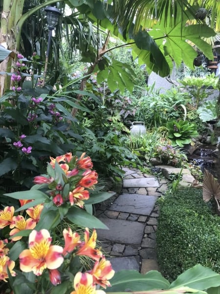 Heol Heddwch – A small mature Balinese style front garden comprising of pond, jungle hut and palms. Opens with Llywn-Onn, set in the shadow of Bannau Brycheiniog (Brecon Beacons). This serene garden has a small arboretum, woodland walk, oriental garden, pergola, pond, shrub and perennial borders. Open 11 May.