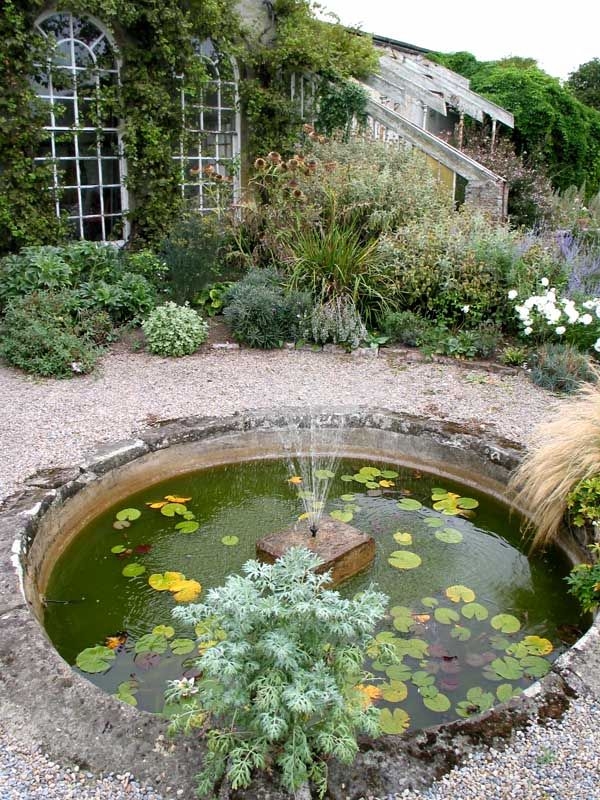 The garden is five minutes walk from the house. Two paths meet at the central feature, an Orangery (open to visitors) with a small ornamental pond before it. The main approach to this attractive building is flanked by herbaceous borders and high yew hedges. There is a fine view from its front windows of the garden’s main gate and the park beyond. In season there are also borders of gold and silver plants, old-fashioned peonies and irises.